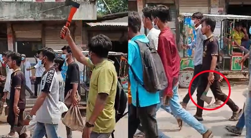 প্রত্যক্ষদর্শী ও পুলিশ সূত্রে জানা যায়, পূর্বের বাজার কমিটির সদস্য আব্দুল গণির (৫২) উসকানিতে মিছিলটি আয়োজন করা হয়। এতে নেতৃত্ব দেন রাশিদুল ইসলাম ওরফে রানা (২৮), নাইম (২৭) ও ফরহাদ (২৫)। তারা দুটি মিনি বাস ও দুটি অ্যাম্বুলেন্সে করে প্রায় একশ জনকে নিয়ে বাজার এলাকায় প্রবেশ করেন। মিছিলকারীদের হাতে ছিল লাঠি, চাইনিজ কুড়াল ও অন্যান্য দেশীয় অস্ত্র।