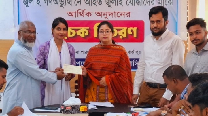 কাপাসিয়ায় জুলাইযোদ্ধাদের মাঝে অনুদানের চেক বিতরণ