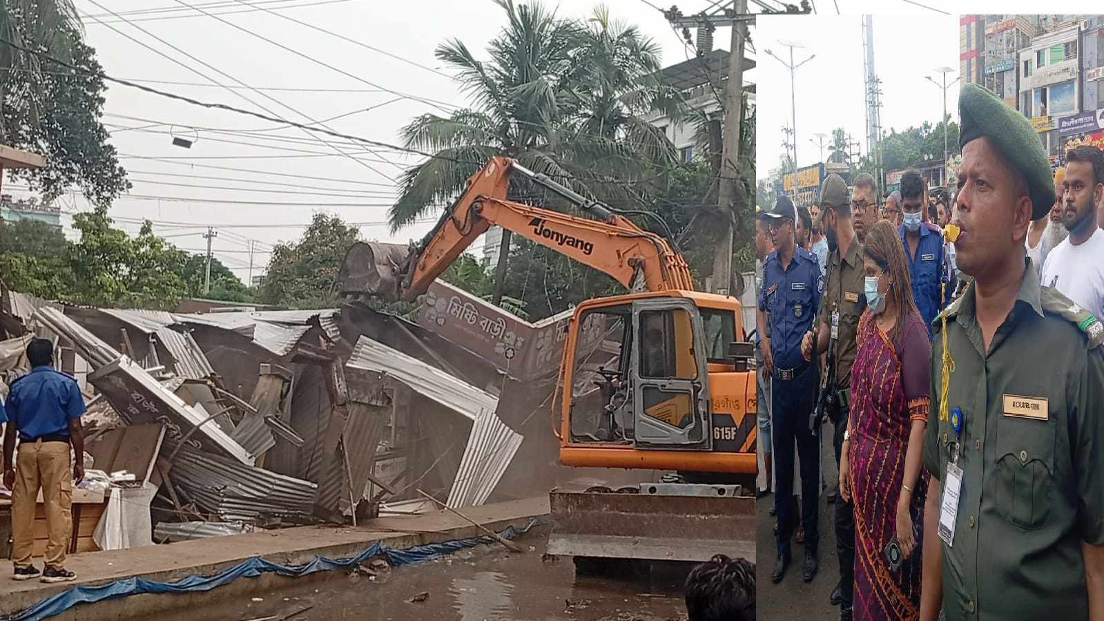 জসিম উদ্দিন রাজিব:- নারায়ণগঞ্জের সোনারগাঁওয়ে ঢাকা-চট্টগ্রাম সড়কের পাশে অবৈধভাবে দখল করা অবৈধ স্থাপনায় উচ্ছেদ অভিযান পরিচালনা করেছে সোনারগাঁও উপজেলা প্রশাসন। বৃহস্পতিবার (১৫ মে) সোনারগাঁও উপজেলার মোগরাপাড়া চৌরাস্তা এলাকায় সকাল থেকে শুরু করে বিকেল পর্যন্ত এ উচ্ছেদ অভিযান পরিচালনা করে বুলডোজার ও ভেকু দিয়ে পাঁচ শতাধিক অবৈধ স্থাপনা গুরিয়ে দেওয়া হয়। সোনারগাঁও উপজেলা নির্বাহী কর্মকর্তা ফারজানা রহমান জানান, দীর্ঘদিন ধরে ঢাকা-চট্টগ্রাম মহাসড়কের দুই পাশে অবৈধভাবে বিভিন্ন ধরনের দোকান বসিয়ে পথচারীদের চলাচলের অযোগ্য করে গড়ে তুলেছে। ফলে জায়গা অপর্যাপ্তের কারণে গাড়ি চালকেরা এলোমেলো ভাবে গাড়ি পার্কিং করাতে প্রতিদিনই যানজটের সৃষ্টি হচ্ছে। মহাসড়কের দুই পাশে গড়ে ওঠা অবৈধ স্থাপনা মালিকদের নোটিশের মাধ্যমে অভিহিত করলেও তারা কোন কর্ণপাত করেনি। তাই আমরা বাধ্য হয়ে আইনগতভাবে উচ্ছেদ অভিযান পরিচালনা করি। উচ্ছেদ অভিযান পরিচালনায় উপজেলার আরো প্রায় কয়েকশত দোকান মালিককে নোটিশের মাধ্যমে অভিহিত করা হয়েছে। যদি তারা কর্ণপাত না করে, তাহলে পরবর্তীতে তাদের বিরুদ্ধেও আইনগত ব্যবস্থা গ্রহণ করা হবে। এই উচ্ছেদ অভিযান পরিচালনা অব্যাহত থাকবে বলেও তিনি জানান। অবৈধ স্থাপনা উচ্ছেদ অভিযান পরিচালনাকালে উপস্থিত ছিলেন, হাইওয়ে থানার ভারপ্রাপ্ত কর্মকর্তা ওয়াহেদ মোরশেদ, উপজেলা সহকারী কমিশনার (ভূমি) মনজুরুল মোরশেদ ও সেগুফতা মেহনাজ, সোনারগাঁও থানার ভারপ্রাপ্ত কর্মকর্তা মোঃ মফিজুর রহমান, মোগরাপাড়া ইউনিয়ন পরিষদের ভারপ্রাপ্ত চেয়ারম্যান হাজী মোঃ নুরুল আলম ও ১ নং ওয়ার্ড সদস্য আবুল হোসেনসহ ফায়ার সার্ভিস, হাইওয়ে পুলিশ ও আনসার বাহিনীর সদস্যরা।