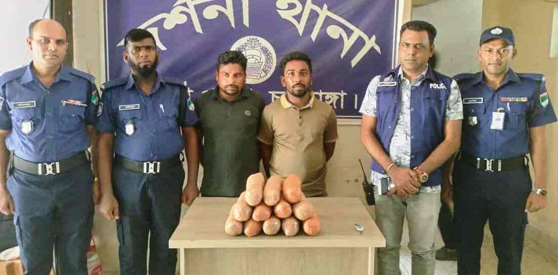 মাহমুদ হাসান রনি, চুয়াডাঙ্গা প্রতিনিধি:- চুয়াডাঙ্গার দর্শনা থানার পুলিশ মাদক বিরোধী অভিযানে ৬ কেজি ১শ২০ গ্রাম গাঁজা,একটি ইজিবাইকসহ২ জনকে গ্রেফতার করেছে। শনিবার বেলা সাড়ে ১২ টায় দর্শনা থানার অফিসার ইনচার্জ মুহম্মদ শহীদ তিতুমীর এর তত্বাবধানে দর্শনা থানার এসআই (নিঃ) মোঃ মাসুদুর রহমান সঙ্গীয় ফোর্সসহ গোপন সংবাদের ভিত্তিতে এক মাদকবিরোধী অভিযান চালায়। এসময় পৌর এলাকার রামনগর – পরানপুর সড়কের মোড়ে একটি চলন্ত ইজিবাইককে দাড়াতে বলে।পরে ইজিবাইকের মধ্যে হতে ১লাখ৮৪ হাজার টাকা মূল্যের ৬ কেজি১শ২০ গ্রাম গাঁজাসহ একই থানাধীন হরিচচন্দপুর গ্রামের মওলা বক্সের ছেলে মোঃ টুটুল মিয়া (২৩)ও ফুলবাড়ি গ্রামের নুহু নবির ছেলে মোঃ সাইদুর রহমান (৩৮)কে ইজিবাইকসহ গ্রেফতার করে। পরে গ্রেফতারকৃত আসামীদের বিরুদ্ধে দর্শনা থানায় মাদকদ্রব্য আইনে মামলা রুজু করা হয়েছে।