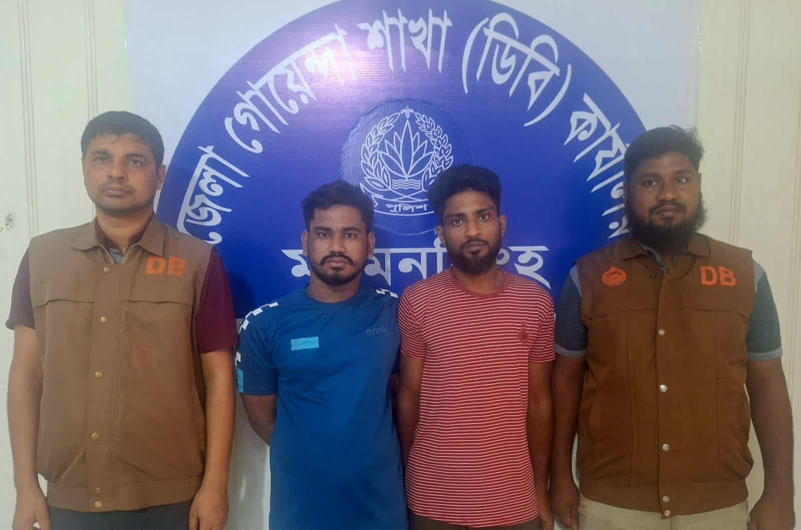 শেখ মামুনুর রশীদ মামুনঃ- ময়মনসিংহ জেলা গোয়েন্দা পুলিশ (ডিবি) টানা অভিযান চালিয়ে চিহ্নিত দুই চাঁদাবাজকে গ্রেফতার করেছে। শনিবার (২১ জুন) ভোররাতে নগরীর বাঘমারা ও মাসকান্দা এলাকায় পৃথক অভিযান চালিয়ে তাদেরকে গ্রেফতার করা হয়। গ্রেফতারকৃতরা হলো, বাঘমারার রাজিব আহাম্মেদ ওরফে বাবু মিয়া এবং কৃষ্টপুরের হৃদয় ওরফে সাকিব। ডিবির ওসি মফিদুল ইসলাম জানান, বিভাগীয় নগরীসহ ময়মনসিংহের আইন শৃঙ্খলা পরিস্থিতি স্বাভাবিক রাখাসহ সাধারণ মানুষের শান্তিপুর্ণ বসবাস ও চলাচল নিশ্চিত এবং চুরি ছিনতাই সহ চাদাবাজদের আইনের আওতায় আনতে পুলিশ সুপার আখতার উল আলমের নির্দেশে নিয়মিত অভিযান ও টহল পুলিশিং কার্যক্রম জোরদার করা হয়েছে। এরই অংশ হিসেবে ডিবির এসআই রাজীব তালুকদার সংগীয় অফিসার ও ফোর্সসহ অভিযান চালিয়ে বাঘমারার রাজিব আহাম্মেদ ওরফে বাবু মিয়া এবং কৃষ্টপুরের হৃদয় ওরফে সাকিব নামে চিহ্নিত দুই চাঁদবাজকে গ্রেফতার করেন। পুলিশ জানিয়েছে, দীর্ঘদিন ধরে এই চক্রটি শহরের বিভিন্ন এলাকায় সাধারণ মানুষের কাছ থেকে জোরপূর্বক চাঁদা আদায় করে আসছিল। তাদের বিরুদ্ধে একাধিক মামলা রয়েছে। চক্রটির অন্য সদস্যদের শনাক্ত ও গ্রেফতারে অভিযান চলছে।