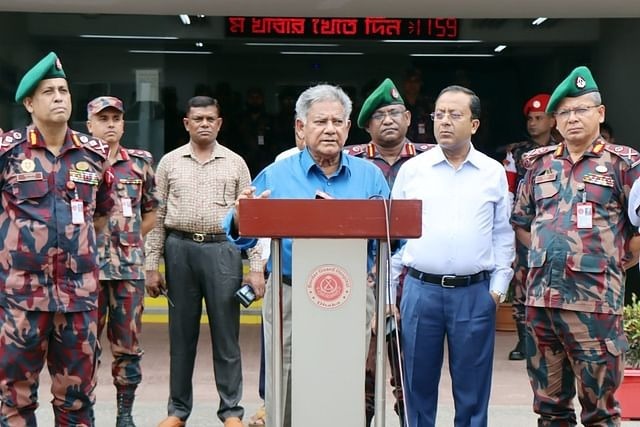 স্বরাষ্ট্র উপদেষ্টা ব্রিগেডিয়ার জেনারেল (অব.) এম সাখাওয়াত হোসেন সাংবাদিকদের সঙ্গে কথা বলেন। পিলখানা, ঢাকা, ১৩ আগস্টছবি: বিজ্ঞপ্তি