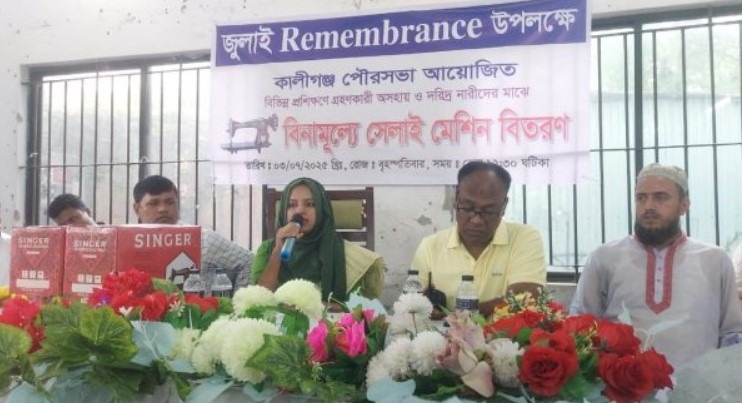 কালিগঞ্জ প্রতিনিধি:- গাজীপুরের কালীগঞ্জে জুলাই জবসবসনৎধহপব উপলক্ষে আজ বৃহস্পতিবার দুপুরে কালীগঞ্জ পৌরসভার সম্মেলন কক্ষে আয়োজিত বিভিন্ন শিক্ষা প্রতিষ্ঠানে বৃক্ষ রোপন ও নারীদের সাবলম্বি করার লক্ষ্যে উপজেলার বিভিন্ন ট্রেডে প্রশিক্ষণপ্রাপ্ত অসহায় নারীদের মাঝে বিনামূল্যে সেলাই মেশিন বিতরন করা হয়েছে।