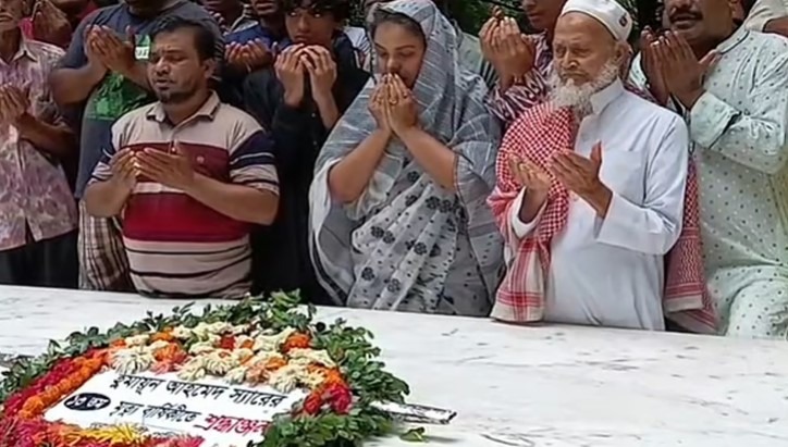স্টাফ রিপোর্টার, গাজীপুর :: গাজীপুরে নুহাশপল্লীতে নানান আয়োজনে জনপ্রিয় কথাসাহিত্যিক হুমায়ূন আহমেদের ১৩তম মৃত্যুবার্ষিকী পালিত হয়েছে। আজ শনিবার বেলা ১১টার দিকে তার পরিবারের সদস্য, ভক্ত, কবি-লেখক ও নাট্যজনেরা ফুল নিয়ে শ্রদ্ধা জানান। সকালে হুমায়ুন আহমেদের স্ত্রী মেহের আফরোজ শাওন, দুই পুত্র নিনিত হুমায়ূন ও নিষাদ হুমায়ূন কবর জিয়ারত করে। এ সময় শুভানুধ্যায়ী ও ভক্তবৃন্দরা উপস্থিত ছিলেন। এ সময় তার বিদেহী আত্মার শান্তি কামনায় প্রার্থনা করা হয়। স্থানীয় একটি মাদ্রাসার শিক্ষার্থীদের নিয়ে আয়োজন করা হয় কোরআনখানি ও মিলাদ মাহফিল।