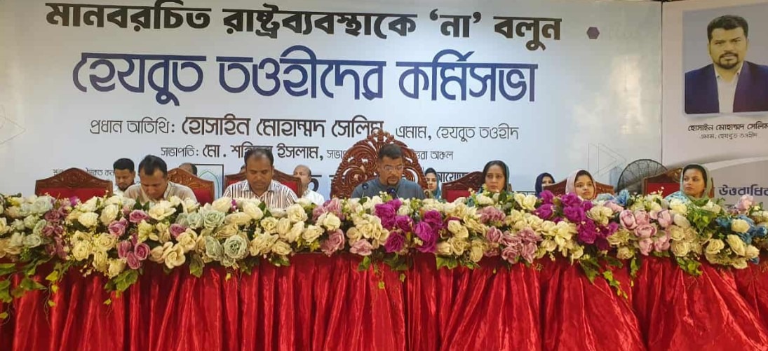 স্টাফ রিপোর্টার, গাজীপুর:- গাজীপুরে হেযবুত তওহীদের কর্মিসভা আজ শুক্রবার বিকাল ৩টায় অনুষ্ঠিত হয়েছে। সাগর সৈকত কনভেনশন হলে এ কর্মিসভার আয়োজন করে গাজীপুর জেলা ও মহানগর হেযবুত তওহীদ। অনুষ্ঠানে প্রধান অতিথি হিসেবে উপস্থিত ছিলেন হেযবুত তওহীদের শীর্ষ নেতা ইমাম হোসাইন মোহাম্মদ সেলিম। প্রধান অতিথি তার বক্তব্যে বলেন, বাংলাদেশের রাজনৈতিক বাস্তবতার প্রেক্ষিতে স্বাধীনতার পর থেকে এদেশে বহু ধরনের সরকার গঠিত হয়েছে। কোনোটা সামরিক, কোনোটা একনায়কতান্ত্রিক, কোনোটা গণতান্ত্রিক। কিন্তু রাষ্ট্র পরিচালনায় জনগণের আশা আকাঙ্ক্ষার প্রতিফলন কোনো সরকার ব্যবস্থাতেই ঘটতে দেখা যায়নি। গত ৬ মাসে দেশে চলমান অপরাধের পরিসংখ্যান তুলে ধরে তিনি বলেন, যত সংস্কারই করেন আর যত সুষ্ঠু নির্বাচনই দেন লাভ হবে না। যতদিন না মানবরচিত রাষ্ট্রব্যবস্থাকে বাদ দিয়ে আল্লাহর দেওয়া রাষ্ট্রব্যবস্থা প্রতিষ্ঠা করা হবে ততদিন অপরাধ, অন্যায়, দুর্নীতি বাড়তেই থাকবে। এখনই সময় মানবরচিত রাষ্ট্রব্যবস্থাকে ‘না’ বলার।