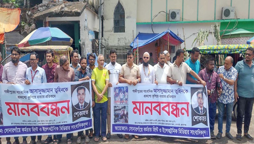 সাংবাদিক তুহিন হত্যায় জড়িতদের ফাঁসির দাবীতে সোনারগাঁওয়ে মানববন্ধন ও বিক্ষোভ মিছিল