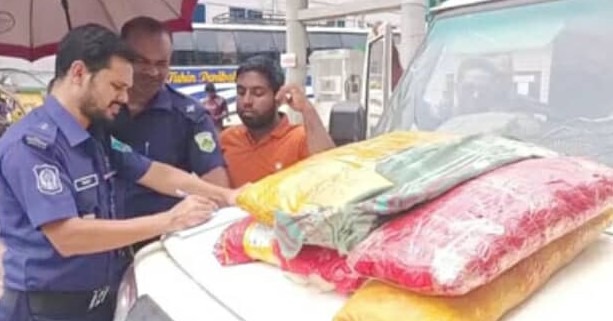 আল আমিন, নাটোর প্রতিনিধি :- নাটোর শহরের মাদ্রাসা মোড় এলাকায় ট্রাফিক পুলিশের তল্লাশীকালে প্রায় ৭ লাখ টাকার গাঁজা উদ্ধার হয়েছে। আজ সোমবার দুপুর ১২টার দিকে শহরের মাদ্রাসা মোড়ে এ অভিযান পরিচালিত হয়। পুলিশ জানায়, বগুড়া থেকে আসা বলেরো কোম্পানির একটি পিকআপ ভ্যানকে ট্রাফিক পুলিশ সিগন্যাল দিয়ে কাগজপত্র যাচাইয়ে অসঙ্গতি ধরা পড়ে। এসময় গাড়িটিকে ১০ হাজার টাকা জরিমানা করা হয়। চালক মো. লিটন (৩০)পিতা: মো. দুলাল, ভরিয়া, শিবগঞ্জ, বগুড়া জরিমানার টাকা আনার কথা বলে গাড়ি রেখে পালিয়ে যায়। পরে ট্রাফিক পুলিশের সন্দেহ হলে গাড়িটিতে তল্লাশি চালানো হয়। তল্লাশিতে চারটি প্যাকেটে মোট ১৭ কেজি ৪০০ গ্রাম গাঁজা উদ্ধার হয়, যার আনুমানিক বাজারমূল্য প্রায় ৭ লাখ টাকা। উদ্ধার হওয়া গাঁজা ও গাড়িটি থানায় হস্তান্তর করা হয়েছে। পলাতক চালককে গ্রেপ্তারের জন্য পুলিশের অভিযান অব্যহত রয়েছে।