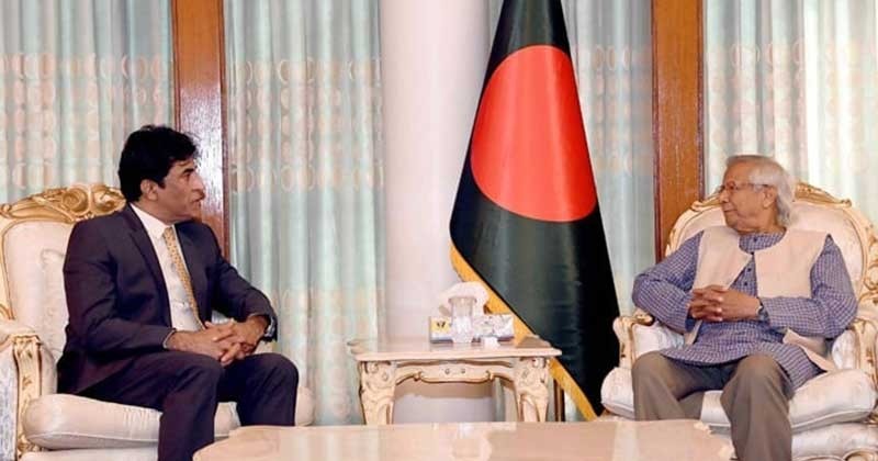 ঢাকায় নিযুক্ত পাকিস্তানের হাইকমিশনার সৈয়দ আহমদ মারুফ মঙ্গলবার রাষ্ট্রীয় অতিথি ভবন যমুনায় প্রধান উপদেষ্টা অধ্যাপক মুহাম্মদ ইউনূসের সাথে সৌজন্য সাক্ষাৎ করেন। এ সময় প্রধান উপদেষ্টা পাকিস্তান সরকারের প্রতি এই আহ্বান জানান।