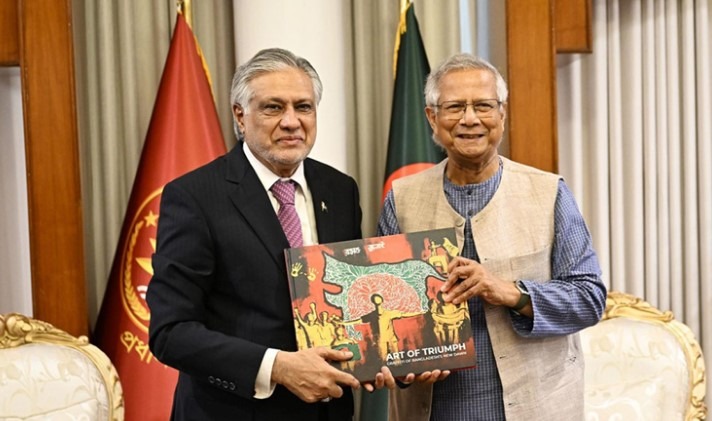 নিজস্ব প্রতিবেদক :: অন্তর্বর্তী সরকারের প্রধান উপদেষ্টা ড. ইউনূসের সঙ্গে সৌজন্য সাক্ষাৎ করেছেন পাকিস্তানের উপপ্রধানমন্ত্রী ও পররাষ্ট্রমন্ত্রী ইসহাক দার। আজ রবিবার বিকেলে রাজধানী ঢাকায় রাষ্ট্রীয় অতিথি ভবন যমুনায় এ সাক্ষাৎ অনুষ্ঠিত হয়। প্রধান উপদেষ্টার প্রেস উইং থেকে পাঠানো এক বার্তায় এ তথ্য জানানো হয়। এর আগে শনিবার বাংলাদেশ সফরে আসেন পাকিস্তানের উপপ্রধানমন্ত্রী। ঢাকায় অবতরণের পর তিনি গতকাল বিএনপি, জামায়াত, এনসিপিসহ বিভিন্ন রাজনৈতিক দলের নেতাদের সঙ্গে সাক্ষাৎ করেন।