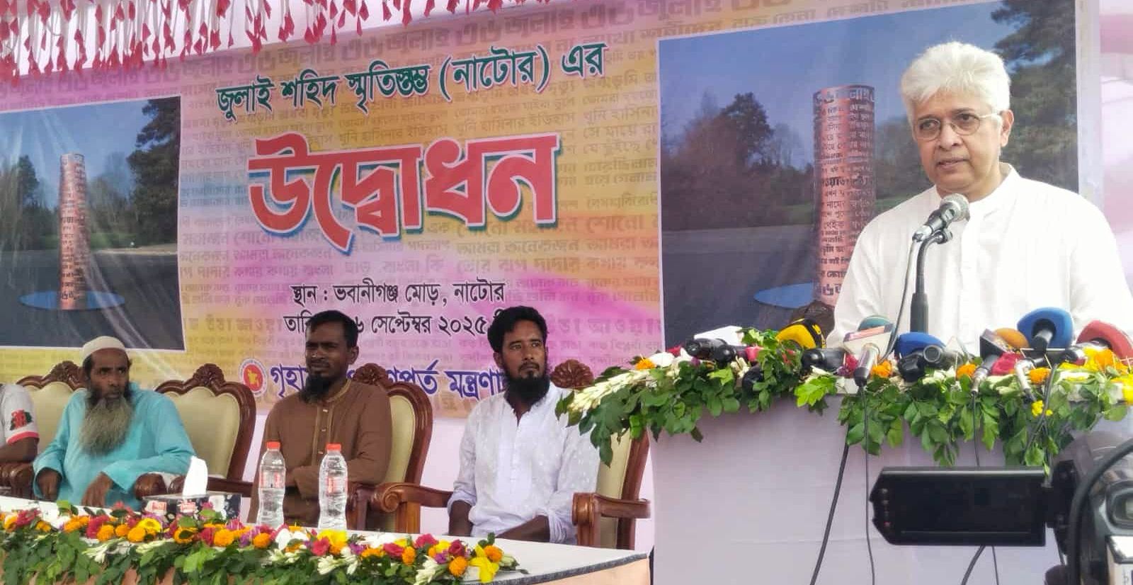 আজ শনিবার সকাল ৯ টায় নাটোর শহরের ভবানীগঞ্জ এলাকায় জুলাই শহীদ স্মৃতিস্তম্ভ উদ্বোধন অনুষ্ঠানে প্রধান অতিথির বক্তব্যে তিনি এসব কথা বলেন।