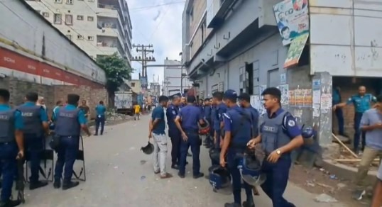 স্টাফ রিপোর্টার, গাজীপুর :: এক মাসের বকেয়া বেতনের দাবিতে গাজীপুরের বাসন সড়ক এলাকায় আলিফ ক্যাজুয়াল নামের একটি কারখানায় শ্রমিকদের বিক্ষোভ হয়েছে। এ সময় তারা ঢাকা-ময়মনসিংহ মহাসড়ক প্রায় আধা ঘণ্টা অবরোধ করে রাখে। আজ সোমবার (৮ সেপ্টেম্বর) সকাল সোয়া ৮টার দিকে বিক্ষোভ শুরু করে। এ সময় শিল্প পুলিশের সঙ্গে শ্রমিকদের ধাওয়া পাল্টা-ধাওয়ার ঘটনা ঘটে। এতে শিল্প পুলিশের ৫ সদস্য ও ২০ জন শ্রমিক আহত হয়েছেন। পরে পুলিশ ঘটনাস্থলে গিয়ে পরিস্থিতি নিয়ন্ত্রণে আনে।