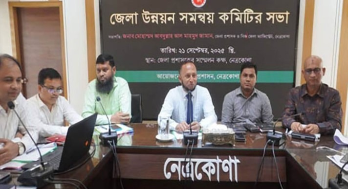 নেত্রকোনা প্রতিনিধি :- নেত্রকোনা জেলা প্রশাসনের উদ্যোগে রোববার জেলা প্রশাসকের কার্যালয়ের সম্মেলন কক্ষে মাসিক উন্নয়ন সমন্বয় কমিটির সভা অনুষ্ঠিত হয়েছে। জেলা প্রশাসক মোহাম্মদ আবদুল্লাহ আল মাহমুদ জামানের সভাপতিত্বে সভায় জেলা পরিষদের নির্বাহী কর্মকর্তা, স্থানীয় সরকার বিভাগের উপ-পরিচালক মো. আরিফুল ইসলাম সরদার, অতিরিক্ত জেলা প্রশাসক (সার্বিক) রাফিকুজ্জামান, অতিরিক্ত জেলা প্রশাসক (রাজস্ব) মুন মুন জাহান লিজা, সদর উপজেলা নির্বাহী অফিসার (ইউএনও) আসমা বিনতে রফিক, জেলা প্রেসক্লাবের সাধারন সম্পাদক ম.কিবরিয়া চৌধুরী হেলিমসহ কমিটির সকল সদস্যগণ উপস্থিত ছিলেন। সভায় সভাপতির বক্তব্যে জেলা প্রশাসক মোহাম্মদ আবদুল্লাহ আল মাহমুদ জামান বিভিন্ন সংস্থার মধ্যে সফল ও সুসংগঠিত সমন্বয়ের উপর গুরুত্ব আরোপ করেন।