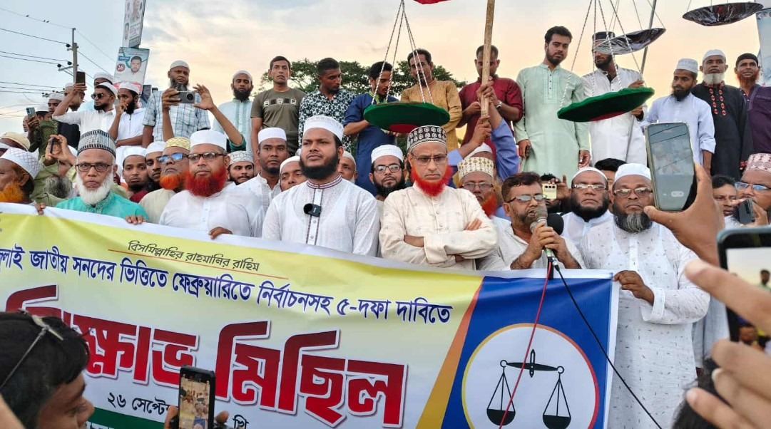 কাপাসিয়া (গাজীপুর) প্রতিনিধি:- পিআর পদ্ধতিতে আগামী জাতীয় সংসদ নির্বাচনসহ পাঁচ দফা দাবিতে গাজীপুরে কাপাসিয়া উপজেলায় সমাবেশ ও বিক্ষোভ মিছিল করেছে জামায়াতে ইসলামী। শুক্রবার (২৬ সেপ্টেম্বর) বিকেল ৪টায় জামায়াতে ইসলামীর কেন্দ্রীয় পূর্বঘোষিত কর্মসূচির অংশ হিসেবে উপজেলা পরিষদ মাঠ থেকে একটি বিক্ষোভ মিছিল বের হয়ে ফকির মজনু শাহ সেতু সংলগ্ন শহীদ তাজউদ্দিন চত্বরে গিয়ে সংক্ষিপ্ত সমাবেশ অনুষ্ঠিত হয়। সমাবেশে জুলাই জাতীয় সনদের ভিত্তিতে আগামী ফেব্রুয়ারির নির্বাচন আয়োজন, নির্বাচনে সংসদের উভয় কক্ষে পিআর পদ্ধতি চালু করা, অবাধ ও সুষ্ঠু নির্বাচনের জন্য লেভেল প্লেয়িং ফিল্ড তৈরি নিশ্চিত, ফ্যাসিস্ট সরকারের গণহত্যা ও দুর্নীতির বিচারসহ ৫ দফা দাবি জানায় নেতাকর্মীরা। এ-সময় কাপাসিয়া উপজেলা জামায়াতে ইসলামীর আমীর মাওলানা ফরহাদ হোসেন মোল্লা’র সভাপতিত্বে, বিশেষ অতিথি উপস্থিত ছিলেন, বাংলাদেশ জামাতে ইসলামী গাজীপুর জেলা শাখার নায়েবে আমির মাওলানা শেফাউল হক, অধ্যাপক শামসুল হুদা লিটন, অধ্যাপক তোফাজ্জল হোসেন । মাওলানা ইমতিয়াজ হোসেন হোসেন বকুলসহ উপজেলা, বিভিন্ন ইউনিয়ন ও ওয়ার্ড পর্যায়ে দায়িত্বশীল নেতৃবৃন্দ উপস্থিত ছিলেন ।
