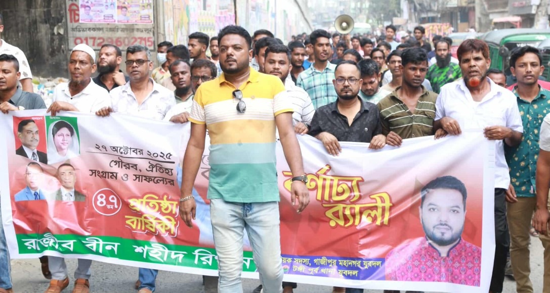 টঙ্গীতে যুবদলের ৪৭তম প্রতিষ্ঠাবার্ষিকী উপলক্ষে রাজীব বিন শহীদ রিগান নেতৃত্বে বর্ণাঢ্য আনন্দ র‍্যালি