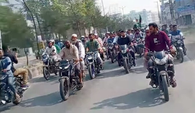 নিষিদ্ধ ঘোষিত আওয়ামী লীগের লকডাউন প্রতিরোধে নাটোরে জামায়াতে ইসলামীর মোটরসাইকেল শোডাউন ও সমাবেশ