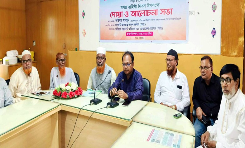 আল আমিন, নাটোর প্রতিনিধি:- নাটোর জেলা বিএনপির যুগ্ম আহ্বায়ক ও সিংড়া উপজেলা বিএনপির সাবেক সাধারণ সম্পাদক দাউদার মাহমুদ বলেছেন, দেশের সকল দূর্যোগে সেনাবাহিনী পাশে ছিল, এখনও আছে। দেশের স্বাধীনতা সার্বভৌমত্ব রক্ষায় সেনাবাহিনীর অবদান অসামান্য। বাংলাদেশের জনগণ সেনাবাহিনীর কাছে সবসময় নিরাপত্তা পেয়েছে। আজ শনিবার (১৫ নভেম্বর) দুপুর ১টায় সিংড়া উপজেলা কৃষি হলরুমে ডিফেন্স এক্স সোলজারস ও ওয়েলফেয়ার এসোসিয়েশন (ডেসওয়া) উপজেলা শাখার আয়োজনে স্বশস্ত্র বাহিনী দিবস উপলক্ষে দোয়া ও আলোচনা সভায় প্রধান অতিথির বক্তব্যে এসব বলেন তিনি। দাউদার মাহমুদ আরও বলেন, ২৯ বছর যাবৎ দলের বিভিন্ন দায়িত্ব পালন করে যাচ্ছি। বিগত ১৭ বছরে দলের সকল আন্দোলন-সংগ্রামে মাঠে ছিলাম। বারবার নির্যাতিত হয়েছি, ১৫টি রাজনৈতিক মিথ্যা মামলা খেয়েছি, ৪ বার জেল খেটেছি। আমার বিশ্বাস বিএনপির ভারপ্রাপ্ত চেয়ারম্যান তারেক রহমান সাহেব আমাকেই মনোনয়ন দিবেন। আমি আপনাদের পাশে যেমন ছিলাম, এখনও আছি। মৃত্যুর আগ পর্যন্ত আপনাদের পাশে থাকবো ইনশাআল্লাহ্। অবসরপ্রাপ্ত সার্জেন্ট আলহাজ্ব আব্দুল জলিলের সভাপতিত্বে ও অবসরপ্রাপ্ত সিনিয়র ওয়ারেন্ট অফিসার মো. মোজাম্মেল হোসেনের সঞ্চালনায় এসময় বক্তব্য দেন সিংড়া পৌর বিএনপির সদস্য সংগ্রহ ও ওয়ার্ড নির্বাচন পরিচালনা কমিটির সদস্য সচিব তায়েজুল ইসলাম, অবসরপ্রাপ্ত সার্জেন্ট মাহতাব আলী, আব্দুল ওহাব প্রমুখ।