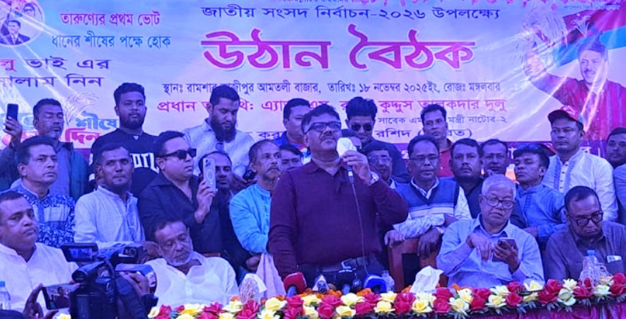আল আমিন, নাটোর প্রতিনিধি:- বিএনপির কেন্দ্রীয় নেতা ও সাবেক উপমন্ত্রী অ্যাডভোকেট এম রুহুল কুদ্দুস তালুকদার দুলু বলেছেন, ফ্যাসিবাদী আওয়ামী সরকারের পতনের পর দেশে আইনের শাসন প্রতিষ্ঠিত হয়েছে। গত বছরের জুলাই আগস্টে দেশের ছাত্র-জনতাকে গণহত্যার দায়ে শেখ হাসিনার মৃত্যুদণ্ড সেই আইনের শাসন প্রতিষ্ঠার প্রকৃষ্ঠ উদাহরণ। আজ মঙ্গলবার (১৮ নভেম্বর) বিকেলে দুলুর জন্মস্থান নাটোরের নলডাঙ্গা উপজেলার রামশার কাজিপুর আমতলি বাজারে স্থানীয় বিএনপি আয়োজিত স্মরণকালের বৃহত্তম নির্বাচনী সভায় প্রধান অতিথির বক্তব্যে তিনি একথা বলেন।