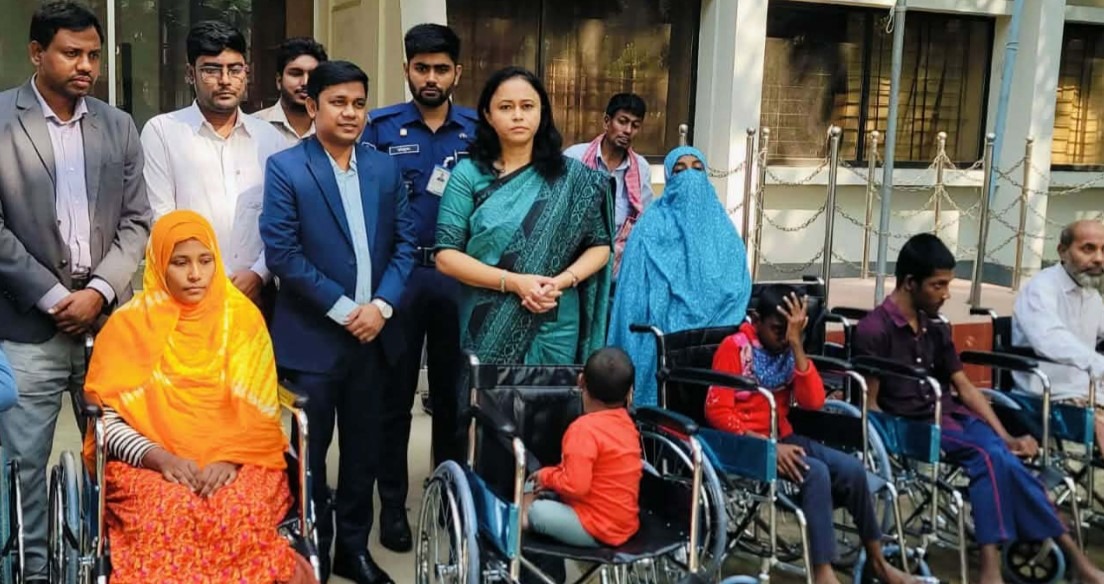 আল আমিন, নাটোর প্রতিনিধি:- নাটোরের সিংড়ায় ২০ জন প্রতিবন্ধীর মাঝে হুইল চেয়ার বিতরণ করেছেন জেলা প্রশাসক (ডিসি) আসমা শাহীন। আজ মঙ্গলবার (২৫ নভেম্বর) দুপুর ১২ টায় উপজেলা পরিষদের অনুকূলে ২০২৫-২৬ অর্থবছরের বার্ষিক উন্নয়ন কর্মসূচি (এডিপি) বরাদ্দকৃত অর্থে প্রতিবন্ধী ব্যক্তিদের মাঝে ২০টি হুইল চেয়ার বিতরণ করেন জেলা প্রশাসক। উপজেলা নির্বাহী কর্মকর্তা (ইউএনও) মো. মাজহারুল ইসলাম এর সভাপতিত্বে এসময় উপস্থিত ছিলেন সিনিয়র উপজেলা মৎস্য কর্মকর্তা মো. শাহাদত হোসেন, উপজেলা প্রকৌশলী আহম্মেদ রফিক, উপজেলা সমাজসেবা কর্মকর্তা মো. আবু দাউদ, উপজেলা প্রকল্প বাস্তবায়ন কর্মকর্তা মিঠুন কুন্ডু প্রমুখ।