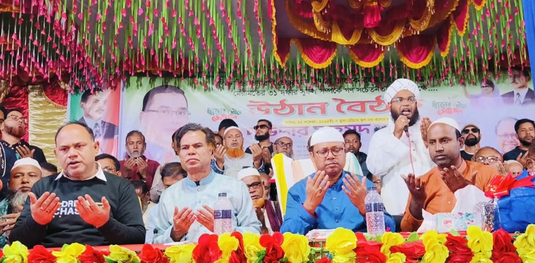 আল আমিন, নাটোর প্রতিনিধি:; নাটোরের সিংড়ায় বিএনপি চেয়ারপারসন ও সাবেক প্রধানমন্ত্রী বেগম খালেদা জিয়ার সুস্থতা কামনায় দোয়া মাহফিল অনুষ্ঠিত হয়েছে। মঙ্গলবার (২৫ নভেম্বর) সন্ধ্যা ৭টায় উপজেলার চৌগ্রাম স্কুল মাঠে ইউনিয়ন বিএনপি আয়োজিত এ দোয়া মাহফিলে প্রধান অতিথি হিসেবে উপস্থিত ছিলেন জেলা বিএনপির যুগ্ম আহ্বায়ক, সিংড়া উপজেলা বিএনপির সাবেক সাধারণ সম্পাদক ও নাটোর-৩ (সিংড়া) আসনে বিএনপির মনোনয়ন প্রত্যাশী দাউদার মাহমুদ। চৌগ্রাম ইউনিয়ন বিএনপির সাবেক আহ্বায়ক এডভোকেট আকরাম হোসেনের সভাপতিত্বে ও সাবেক যুগ্ম আহ্বায়ক রুস্তম আলীর সঞ্চালনায় এসময় বিশেষ অতিথি হিসেবে উপস্থিত ছিলেন পৌর বিএনপির সদস্য সংগ্রহ ও ওয়ার্ড নির্বাচন পরিচালনা কমিটির সদস্য সচিব তায়েজুল ইসলাম, পৌর বিএনপির সাবেক যুগ্ম আহ্বায়ক বোরহান উদ্দিন বাবু, উপজেলা যুবদলের আহ্বায়ক হাবিবুর রহমান, সদস্য সচিব আব্দুল মালেক, যুগ্ম আহ্বায়ক আবু সাঈদ পলাশ, উপজেলা মৎস্যজীবি দলের সাধারণ সম্পাদক বাবুল হোসেন বাবু, উপজেলা বিএনপির সদস্য সবুজ মাহমুদ, যুবদল নেতা আব্দুল্লাহ আল মমিন, চৌগ্রাম ইউনিয়ন বিএনপির সাবেক যুগ্ম আহ্বায়ক মো. মোশাররফ হোসেন, সাবেক যুগ্ম আহ্বায়ক মো. রেজাউল করিম, যুবদলের আহ্বায়ক কাদিরুল আনাম লেমন, যুগ্ম আহ্বায়ক টিপু সুলতান প্রমুখ।