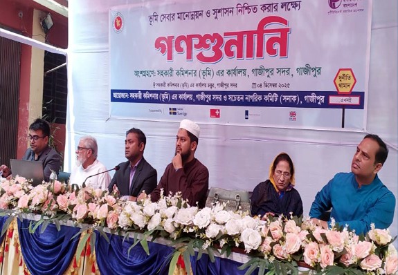 নিজস্ব প্রতিবেক:- ট্রান্সপারেন্সি ইন্টারন্যাশনাল বাংলাদেশ (টিআইবি)’র অনুপ্রেরণায় গঠিত সচেতন নাগরিক কমিটি (সনাক), গাজীপুর এবং সহকারী কমিশনার (ভূমি), গাজীপুর সদর অফিসের যৌথ উদ্যোগে আজ বৃহস্পতিবার (৪ ডিসেম্বর) সকালে সহকারী কমিশনার (ভূমি) এর কার্যালয়ে উন্মুক্ত গণশুনানি অনুষ্ঠিত হয়। ভূমি সেবার মানোন্নয়ন, অনিয়ম প্রতিরোধ ও জনগণের সমস্যা-সমাধান নিশ্চিত করার লক্ষ্যে সনাক সভাপতি যোবেদা আখতার এর সভাপতিত্বে, অতিরিক্ত জেলা প্রশাসক (রাজস্ব ও এলএ) মো: সোহেল রানা এবং সহকারী কমিশনার (ভূমি) মো: মঈন খান এলিস এর উপস্থিতিতে আয়োজিত এ গণশুনানিতে গাজীপুর সদর উপজেলার বিভিন্ন এলাকার সেবাপ্রার্থী, গণমাধ্যম কর্মী, সনাক, এসিজি ও ইয়েস সদস্য এবং স্থানীয় জনগণ অংশগ্রহণ করেন। এসময় সেবা গ্রহীতা হিসেবে ভূমি সেবার অভিজ্ঞতা বিনিময় করেন গণপ্রজাতন্ত্রী বাংলাদেশ সরকারের সাবেক সচিব ও রাষ্ট্রদূত মো: ইকবাল।