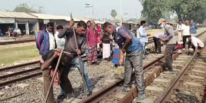 নাটোরের অতিরিক্ত ঠান্ডায় রেললাইনে ফাটল