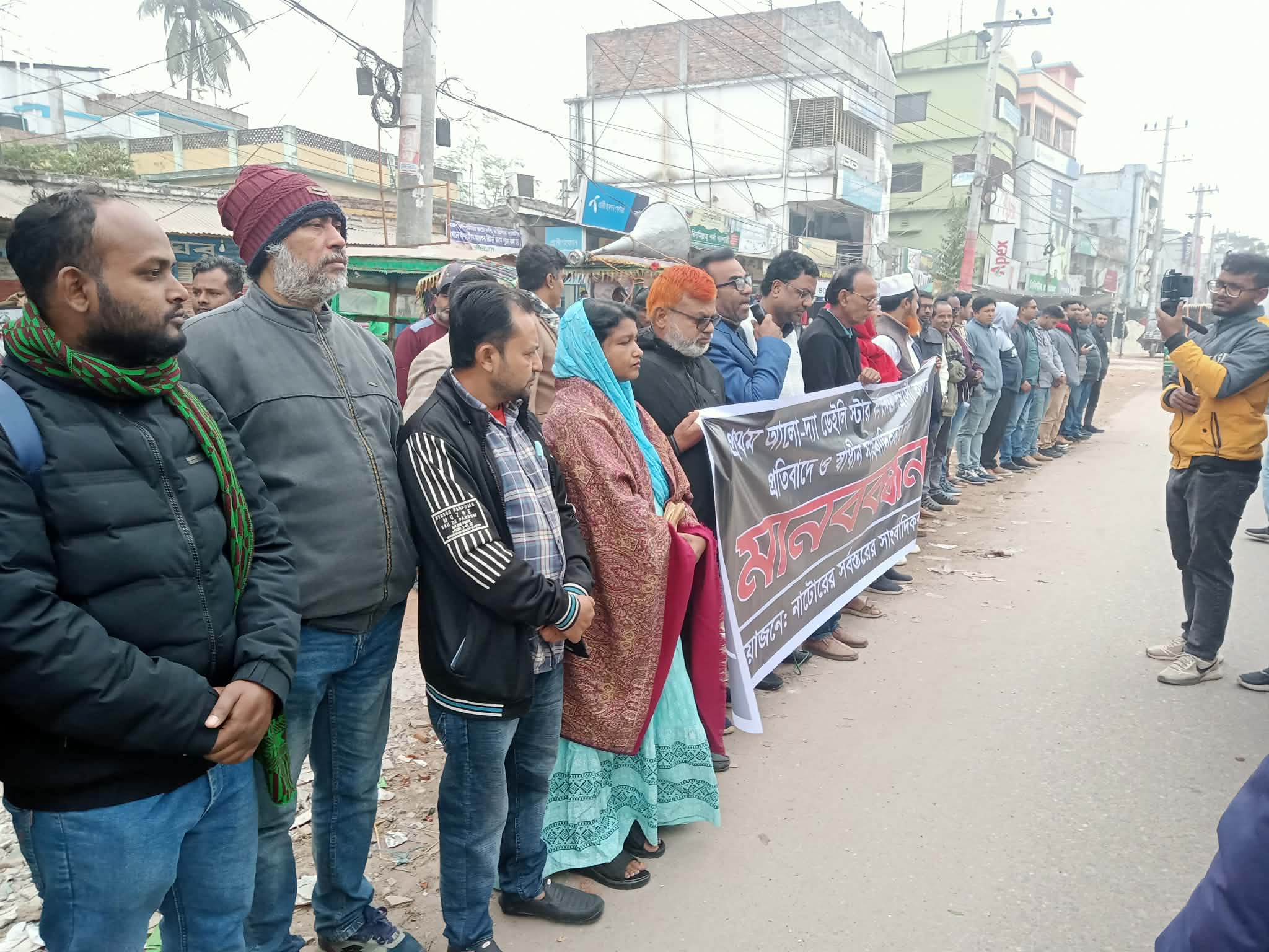 প্রথম আলো ও ডেইলি স্টার কার্যালয়ে হামলার প্রতিবাদে এবং স্বাধীন সাংবাদিকতার দাবিতে নাটোরে সাংবাদিকদের মানববন্ধন