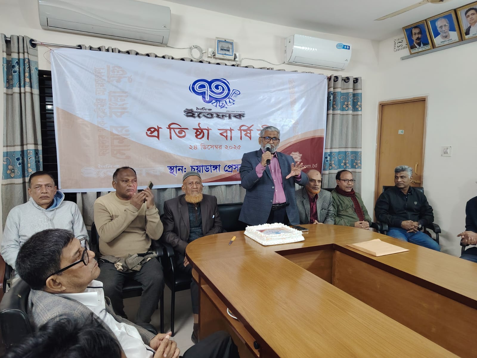 স্টাফ রিপোর্টার: দেশের ঐতিহ্যবাহী জাতীয় দৈনিক ইত্তেফাকের ৭৩তম প্রতিষ্ঠাবার্ষিকী উপলক্ষে চুয়াডাঙ্গায় নানা কর্মসূচির মধ্য দিয়ে দিনটি উদযাপন করা হয়েছে। ২৪ ডিসেম্বর বুধবার বেলা সাড়ে ১১টায় চুয়াডাঙ্গা প্রেসক্লাব মিলনায়তনে আলোচনা সভা অনুষ্ঠিত হয়। এতে প্রধান অতিথি হিসেবে উপস্থিত ছিলেন পাবলিক প্রসিকিউটর (পিপি) ও চুয়াডাঙ্গা জেলা আইনজীবী সমিতির সভাপতি অ্যাডভোকেট মারুফ সারোয়ার বাবু। প্রধান অতিথির বক্তব্যে তিনি বলেন, দৈনিক ইত্তেফাক শুধু একটি সংবাদপত্র নয়, এটি বাংলাদেশের ইতিহাস ও গণতান্ত্রিক আন্দোলনের এক নির্ভরযোগ্য দলিল। মুক্ত সাংবাদিকতার পথচলায় পত্রিকাটির অবদান স্মরণীয় হয়ে থাকবে।