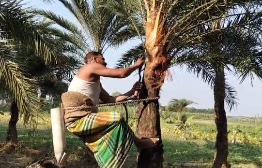 মোঃ ফজলুল কবির গামা:- গ্রামের নাম গুড়পাড়া, গ্রামের মানুষ রস সংগ্রহ ও গুড়ে রূপান্তরিত করার প্রক্রিয়া প্রজন্ম থেকে প্রজন্মান্তরে করে আসছে। ঝিনাইদহ জেলার কোটচাঁদপুর উপজেলার এলাঙ্গী ইউনিয়নে এই গ্রামটি সবুজের সমারহে ভরপুর। ওই গ্রামের লিটন নামের একজন কষৃক শুধু রস গুড় উৎপাদনের জন্য রীতিমত চাষ করেছেন শতাধিক খেঁজুর গাছ। বাণিজ্যিকভাবে খেঁজুর গুড়ের উৎপাদন শুরু করেছেন তিনি, এতে সফলতাও পেয়েছেন। খেজুর গুড় বাঙালির অন্যতম প্রধান প্রাকৃতিক মিষ্টি, যা শীতকালে অগ্রহায়ণ মাস থেকে ফাল্গুন মাস পর্যন্ত খেজুরের রস থেকে তৈরি হয়। চাষী লিটনের সাথে কথা বলে জানা যায় তার বাবা দাদা সারা জীবন খাঁটি খেঁজুরের গুড় তৈরি করেছেন, কিন্তু এখন আর আগের মত খেঁজুর গাছ পাওয়া যায়না। যে কারণে তিনি আজ থেকে প্রায় ১০ বছর আগে নিজের ২০ শতাংশ জমিতে ১২০টি খেঁজুর গাছ রোপন করেন। বর্তমান তার জমিতে ১০০টি খেঁজুর গাছ আছে। গত ৬ বছর যাবত তিনি ওই গাছ গুলো থেকে রস সংগ্রহ করে গুড় তৈরি করছেন। তিনি আরো জানান কোন প্রকার ভেজাল ছাড়াই নিজের জমিতে রোপনকৃত খেঁজুর গাছ থেকে নিজেই রস সংগ্রহ করে খাঁটি গুড় তৈরি করেন। তার এ গুড়ের ব্যাপক চাহিদা থাকায় বাড়ি থেকেই সব গুড় বিক্রি হয়ে যায়। বর্তমান বাজার মূল্য প্রতি কেজি গুড় ৩০০ টাকা বলে তিনি জানান। প্রতি বছর খেঁজুর গুড় বিক্রি করে তিনি আয় করেন ২ লক্ষ টাকার অধিক। গ্রামের প্রবীন ব্যক্তি মহি উদ্দিন জানান, এক দেড়শো বছর আগে এলাকায় প্রচুর খেঁজুর গাছ থাকায় অনেক গুড় তৈরি হতো সেই থেকে গ্রামটির নাম হয়েছে গুড়পাড়া। গ্রামটি ঘুরে দেখা যায় গ্রামের রাস্তার দু’ধারে এখনও প্রচুর খেজুঁর গাছ আপন ঠিকানায় দাড়িঁয়ে আছে। প্রতিটি গাছে শোভা পাচ্ছে মাটির কলস। পাখিদের কলকাকলিতে মুখরিত এলাকার পরিবেশ। খেজুর গুড়ের ইতিহাস সুপ্রাচীন, যা এ অঞ্চলের মানুষের খাদ্যাভ্যাসের অংশ, তবে উনিশ শতকে ইংরেজ ব্যবসায়ীদের আগমনের ফলে এর বাণিজ্যিকীকরণ ও শিল্পায়নের শুরু হয়, বিশেষ করে যশোর ও আশপাশের অঞ্চলে, যা পরবর্তীতে একটি বড় শিল্পে পরিণত হয়। যদিও বর্তমানে এর ঐতিহ্য কমে আসছে। এক সময় খেঁজুর গুড়ের খ্যাতির জন্যই গ্রামটির নাম হয়েছে গুড়পাড়া বলে জানান (অব) অধ্যাপকওলিয়ার রহমান । সেই গ্রামে এখন আর আগের মত খেঁজুর গাছ না থাকায় ভাটা পড়েছে খেঁজুর গুড়ে, অন্যদিকে ভেজালে সয়লাব বাজার। তারপরও গ্রামটির ঐতিহ্য ধরে রাখতে রীতিমত যুদ্ধ করে চলেছেন লিটনের মত গাছিরা। কোটচাঁদপুর উপজেলা কৃষি অফিসার জাহিদ হোসেন জানান খেঁজুর গাছ সাধারণত রাস্তার পাশে বা জমির আলই-এ হয় কিন্তু কৃষক লিটন যেটা করেছেন তা হলো সম্পূর্ণ জমিতে তিনি খেঁজুর গাছ চাষ করেছেন, তার এমন উদ্যোগকে স্বাগত জানিয়ে তিনি বলেন কো