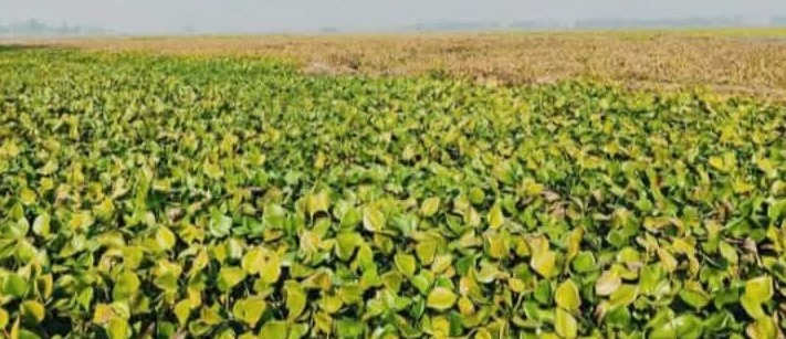 আল আমিন, নাটোর প্রতিনিধি :- মৎস্য ও শস্য ভান্ডার হিসেবে খ্যাত দেশের সর্ববৃহৎ চলনবিল অধ্যুষিত সিংড়া উপজেলায় একমাত্র প্রধান ফসল বোরো ধান। বন্যার পানিতে তলিয়ে থাকা এ উপজেলার বিস্তৃত ফসলের জমিগুলো জেগে উঠেছে। অতীতের হিসাব অনুযায়ী শস্য ভান্ডারের এই উপজেলার কৃষকদের বীজতলা তৈরি, বীজতলায় পানি সেচ কিংবা বোরো ধান রোপণের জন্য জমি প্রস্তুতে ব্যস্ত থাকার কথা। কিন্তু এ বছর দীর্ঘ এবং অসময়ের বন্যার কারণে ছোট বড় মাঠগুলোতে উজান থেকে ভেসে আসা অবাঞ্ছিত আগাছা ও কচুরিপানা কৃষি জমিতে জমে থাকার কারণে অনিশ্চিত হয়ে পড়েছে এই উপজেলার পাঁচ হাজার হেক্টর জমির বোরো ধান চাষ ও বীজতলা তৈরি। জমি প্রস্তুত তো দূরের কথা কচুরিপানা পরিষ্কারে দিশেহারা এই উপজেলার অনেক কৃষক। সরেজমিনে ঘুরে দেখা গেছে, উপজেলার তাজপুর ইউনিয়নের রাখালগাছা, বজরাহার, চৌগ্রাম সিংড়া পৌর এলাকার উত্তর ও দক্ষিণ দমদমা হিয়ালা বিল, ডাহিয়া,পাঁড়িল, কাউয়াটিকরি, বেড়াবাড়ি, গাড়াবাড়ি, সরিষাবাড়ী, সাঁতপুকুরিয়াসহ বিভিন্ন এলাকার জমিগুলোতে জমে আছে কচুরিপানা। সিংড়া উপজেলার ছোট বড় খালগুলো বর্ষার শুরু থেকে বাঁশের বানা দিয়ে বেড়া দেয়ার কারণে কচুরিপানার প্রতিবন্ধকতা সৃষ্টি করেছে। এ বছর কচুরিপানা ভয়াবহ আকার ধারণ করেছে। যেসব জমিতে হালকা কচুরিপানা রয়েছে সেগুলো পরিষ্কার করতে ৫ হাজার টাকা এবং বেশি কচুরিপানা জমে থাকা জমিগুলো পরিষ্কার করতে ১২ থেকে ১৫ হাজার টাকা ব্যয় হচ্ছে।তাই কৃষকরা ব্যয়ের কথা চিন্তা করে অনেকে এ বছর বোরো ধান চাষ থেকে মুখ ফিরিয়ে নিচ্ছে। উপজেলার হিয়ালা বিলের অন্তত ২০০ হেক্টর জমি এবার অনাবাদি থাকবে কচুরিপানার কারণে। ওই জমিগুলোতে যে পরিমাণ কচুরিপানা আটকে গেছে তা পরিষ্কার করা সম্ভব নয়। কচুরিপানা দ্রুত পরিষ্কার করার জন্য কৃষকরা জমিতে বিভিন্ন ধরনের কীটনাশক ও বিষ প্রয়োগ করছে এতে কোন ধরনের উপকার আসছে না শুধু অর্থের ব্যয় ছাড়া। উপজেলা কৃষি বিভাগ জানায়, এ বছর ৫ হাজার হেক্টর জমিতে কচুরিপানা জমে আছে। যা পরিষ্কার করতে জমি ভেদে ৫ থেকে ১০ হাজার টাকা অতিরিক্ত ব্যয় হচ্ছে। প্রতিবছর সিংড়া উপজেলার মাঠগুলোতে বর্ষাকালে যে পরিমাণ কচুরিপানা ও আগাছা জন্ম নিচ্ছে তা অব্যাহত থাকলে আগামী কয়েক বছরের মধ্যে পুরো বিল কচুরিপানা গ্রাস করে নেবে।