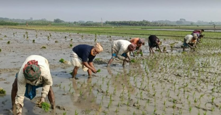 আলমডাঙ্গায় কনকনে শীতের মধ্যে বোরো ধান চাষে ব্যস্ত চাষিরা
