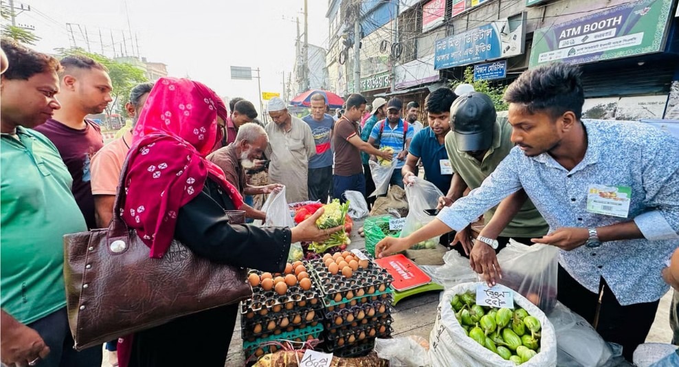 দিনমজুর হযরত আলী এই পথ ধরে যেতে গিয়ে বাজারে দাঁড়ান। বলেন, ‘এখানে ন্যায্যমূল্যে চাল, ডাল, সবজি বিক্রির হচ্ছে দেখলাম। বাজারে যে দাম সে তুলনায় এখানে প্রতিটা জিনিসের দাম পাঁচ থেকে ১৫ টাকা কম। যারা এই কাজ করছে তাদের মন থেকে দোয়া করি।’