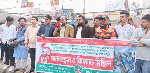 নিজস্ব প্রতিবেদক:- টঙ্গীতে ধর্ষেণের হুমকির প্রতিবাদ করায় বাংলাদেশ ইয়ুথ রেভুলেশন ও ধর্ষণ প্রতিরোধ মঞ্চের সদস্য নুরনবীর উপর ভিক্টর ক্ল্যাসিক পরিবহনের শ্রমিকদের হামলার প্রতিবাদে গাজীপুরের টঙ্গীতে মানববন্ধন করেছে বাংলাদেশ ইয়ুথ রেভুলেশনের সদস্যরা। আজ শুক্রবার বিকেলে ঢাকা ময়মনসিংহ মহাসড়কের টঙ্গীর কলেজ গেট এলাকায় এই মানববন্ধন অনুষ্ঠিত হয়। এতে অংশগ্রহন করেন সংগঠনের উপদেষ্টা ও গাজীপুর মহানগর যুবশক্তির মূখ্য সংঘটক আকাশ ঘোষ, যুগ্ম সদস্য সচিব সাইফুল ইসলাম আকাশ সহ বাংলাদেশ ইয়ুথ রেভুলেশনের কর্মীবৃন্দ।