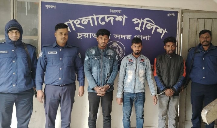 বশিরুল আলম,আলমডাঙ্গা (চুয়াডাঙ্গা) থেকে:- শহরের একাডেমি মোড়ে আইন-শৃঙ্খলা বাহিনীর চেকপোস্টে দায়িত্বরত পুলিশ সদস্যদের সঙ্গে অসদাচরণ ও হুমকি দেওয়ার ঘটনায় তিন যুবককে আটক করেছে পুলিশ। ঘটনাটি ঘটে গত শুক্রবার দিবাগত রাতে ০২ জানুয়ারি চুয়াডাঙ্গা একাডেমি মোড় এলাকায়। চেকপোস্টে দায়িত্ব পালনকালে কয়েকজন যুবক পুলিশ সদস্যদের উদ্দেশ্যে অশালীন ভাষায় কথা বলেন এবং ‘দেখে নেওয়ার’ হুমকি দেন। এ সংক্রান্ত একটি ভিডিও দৈনিক মাথাভাঙ্গা লাইভে প্রচার হলে তা দ্রুত সামাজিক যোগাযোগমাধ্যমে ছড়িয়ে পড়ে এবং ব্যাপক আলোচনার সৃষ্টি হয়। ভিডিওটি প্রশাসনের ঊর্ধ্বতন কর্মকর্তাদের নজরে এলে তাৎক্ষণিকভাবে আইনগত ব্যবস্থা গ্রহণের নির্দেশ দেওয়া হয়। এরই ধারাবাহিকতায় সোমবার ০৫ জানুয়ারি মধ্যরাতে চুয়াডাঙ্গা সদর থানা পুলিশ ও ডিবি পুলিশের যৌথ অভিযানে জীবননগর উপজেলার বিভিন্ন এলাকা থেকে তিন যুবককে আটক করে। আটককৃতরা হলেন জীবননগরের উথলী এলাকার আজগার আলীর ছেলে রাজু হোসেন (২৫), এবং একিই এলাকার রাইয়ান এর ছেলে রিওন মিয়া (২৫) ও দর্শনার রাঙ্গিয়ারপুতা এলাকার শহিদুল ইসলাম এর ছেলে সাওন (২৭)।