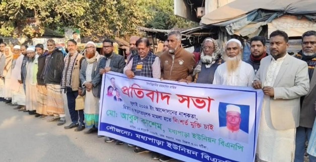 আবুল কাশেমের পুত্র আশরাফুল আলম জানান, “আমাদের পরিবারের সকলেই বিএনপি করি। আমার পিতা বিএনপি নেতা আবুল কাশেম, আমার ছোট ভাই শাহরিয়ার আলম ওয়ার্ড ছাত্রদলের সভাপতি ও চাচাতো ভাইকে আওয়ামী লীগের ট্যাগ লাগিয়ে ২০২৫ সালের ২৯ মে দায়েরকৃত ৩২ নং মামলায় জড়িয়ে হয়রানি করা হচ্ছে।” প্রতিবাদ সভায় মধ্যপাড়া ইউনিয়ন বিএনপি ও অঙ্গসংগঠনের বিভিন্ন পর্যায়ের নেতাকর্মীরা উপস্থিত ছিলেন।