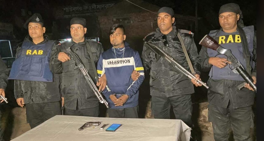 শুক্রবার (৯ জানুয়ারি) রাত ৯টা থেকে সাড়ে ১১টা পর্যন্ত ১৪ ফিল্ড রেজিমেন্ট আর্টিলারির মেজর অর্ণবের নেতৃত্বে একটি আভিযানিক দল এবং র্যাব পোড়াবাড়ীর একটি প্রতিনিধি দল গোপন সংবাদের ভিত্তিতে মাওনা পিয়ার আলী কলেজ রোড এলাকায় একটি ভাঙারির দোকানে অভিযান পরিচালনা করে। অভিযানে আকাশকে অস্ত্রসহ হাতেনাতে আটক করা হয়। এসময় জব্দ করা হয় একটি বিদেশি পিস্তল, এক রাউন্ড গুলি এবং একটি স্মার্ট মোবাইল ফোন। আটক আকাশের বাড়ি উপজেলার মাওনা এলাকায়। প্রাথমিক জিজ্ঞাসাবাদ শেষে তাকে র্যাব-১ এর কাছে হস্তান্তর করা হয়েছে। র্যাবের প্রাথমিক তদন্ত শেষে তাকে শ্রীপুর থানায় সোপর্দ করা হবে বলে জানা গেছে।