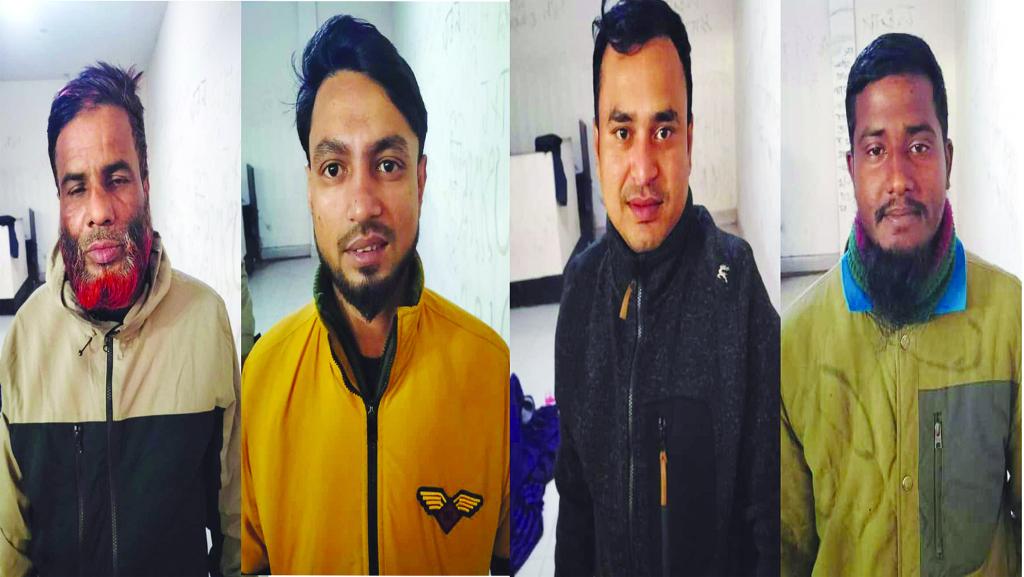 নিজস্ব প্রতিনিধি, গাজীপুর: গাজীপুর মহানগরীর গাছা থানায় সন্ত্রাসবিরোধী আইনে দায়ের করা মামলায় আওয়ামী লীগ ও এর সহযোগী সংগঠনের চারজন নেতাকে গ্রেপ্তার করেছে পুলিশ। গ্রেপ্তারকৃতরা হলেন— ৩৪নং ওয়ার্ড আওয়ামী লীগের যুগ্ম আহ্বায়ক মো. আঃ ছামাদ মণ্ডল (৫০), ৩৫নং ওয়ার্ড আওয়ামী মৎস্যজীবী লীগের আহ্বায়ক মো. সোহাগ (৩৫), ৩৪নং ওয়ার্ড কৃষক লীগের সাংগঠনিক সম্পাদক মো. আকরাম হোসেন (২৭) এবং ৩৬নং ওয়ার্ড আওয়ামী মৎস্যজীবী লীগের সদস্য সচিব মো. মিজানুর রহমান (৩৩)। গাছা থানার সাব-ইন্সপেক্টর (নিরস্ত্র) মো. সাইফুল আলমের নেতৃত্বে পরিচালিত অভিযানে গত ৮ ও ৯ জানুয়ারি বিভিন্ন এলাকা থেকে তাঁদের গ্রেপ্তার করা হয়। পুলিশ সূত্রে জানা গেছে, গত ২১ সেপ্টেম্বর/২০২৫ ভোরে আসামিরা নিষিদ্ধ সংগঠনের সদস্য হিসেবে রাষ্ট্রবিরোধী ষড়যন্ত্র, জননিরাপত্তা বিঘ্নিত করা এবং জনমনে আতঙ্ক সৃষ্টির উদ্দেশ্যে একত্রিত হয়েছিলেন। প্রজাতন্ত্রের সম্পত্তির ক্ষতিসাধন ও সন্ত্রাসী কর্মকাণ্ডে প্ররোচনা দেওয়ার অভিযোগে তাঁদের বিরুদ্ধে গাছা থানায় সন্ত্রাসবিরোধী আইন, ২০০৯-এর একাধিক ধারায় মামলা করা হয় (মামলা নং-১৮)। তদন্তকারী কর্মকর্তা জানান, গ্রেপ্তারকৃত আসামি ছামাদ মণ্ডলকে উত্তর খাইলকুর এবং মো: সোহাগ ও মো: আকরাম হোসেন দেরকে হাজীর পুকুর এলাকা থেকে আটক করা হয়। সর্বশেষ আসামি মিজানুর রহমানকে ইছর এলাকা থেকে গ্রেপ্তার করে পুলিশ। প্রাথমিক জিজ্ঞাসাবাদ শেষে তাদের বিজ্ঞ আদালতে পাঠানো হয়েছে। রাষ্ট্রবিরোধী কর্মকাণ্ড ও সন্ত্রাসী কার্যে অর্থায়নের বিষয়ে তাঁদের বিরুদ্ধে পর্যাপ্ত তথ্য-প্রমাণ পাওয়া গেছে বলে জানিয়েছে পুলিশ।