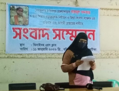 মোঃ ফজলুল কবির গামা, বিশেষ প্রতিনিধি:- মোছাঃ শিউলি বেগম, পিতা বদিয়ার আর বিশ্বাস, গ্রাম বড়বাড়ি বগুড়া, থানা- শৈলকুপা, জেলা ঝিনাইদহ ১১.০১.২০২৬ তারিখ (রবিবার) ঝিনাইদহ প্রেসক্লাবে একটি সংবাদ সম্মেলন ডাকেন, গত ইং ০৮.০১.২০২৬ তারিখে ঝিনাইদহ প্রেসক্লাবে সংবাদ সম্মেলন করে মোঃ কামরুজ্জামান, পিতা-আলী কদর, গ্রাম হাবিববুর কাজীপাড়া, থানা- শৈলকূপা, জেলা- ঝিনাইদহ তার বিষয়ে যে সকল বক্তব্য উপস্থাপন করেছিলেন তার পরিপ্রেক্ষিতে।