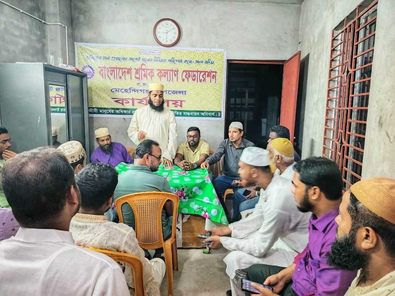 সভায় উপস্থিত ছিলেন বাংলাদেশ শ্রমিক কল্যান ফেডারেশন মেহেন্দিগঞ্জ উপজেলা শাখার সভাপতি মাওলানা সাইফুল্লাহ, সেক্রেটারি নুরে রাব্বি নাঈম, সংগঠনের পৌর কমিটির সহ-সভাপতি রফিকুল ইসলাম, সেক্রেটারি রাসেল সিকদার, অর্থ সম্পাদক ইসমাইল, ফার্মা ইউনিট এর সেক্রেটারি মোঃ নাইমুল ইসলাম প্রমুখ। বক্তারা বলেন, শ্রমিকদের ন্যায্য দাবী এবং অধিকার আদায়ে সচেষ্ট থাকবে তাদের সংগঠন। সমাজে শ্রমিকরা সবচেয়ে বেশি অবহেলিত তারা তাদের ন্যা্য্য পাওনা টুকু বুঝে পাচ্ছে না। শ্রমিকদের পাশে অধিকার আদায়ে কাজ করবে তারা। বিভিন্ন ইউনিয়ন এবং ওয়ার্ডে তাদের সংগঠনের কার্যক্রম চলমান রয়েছে।