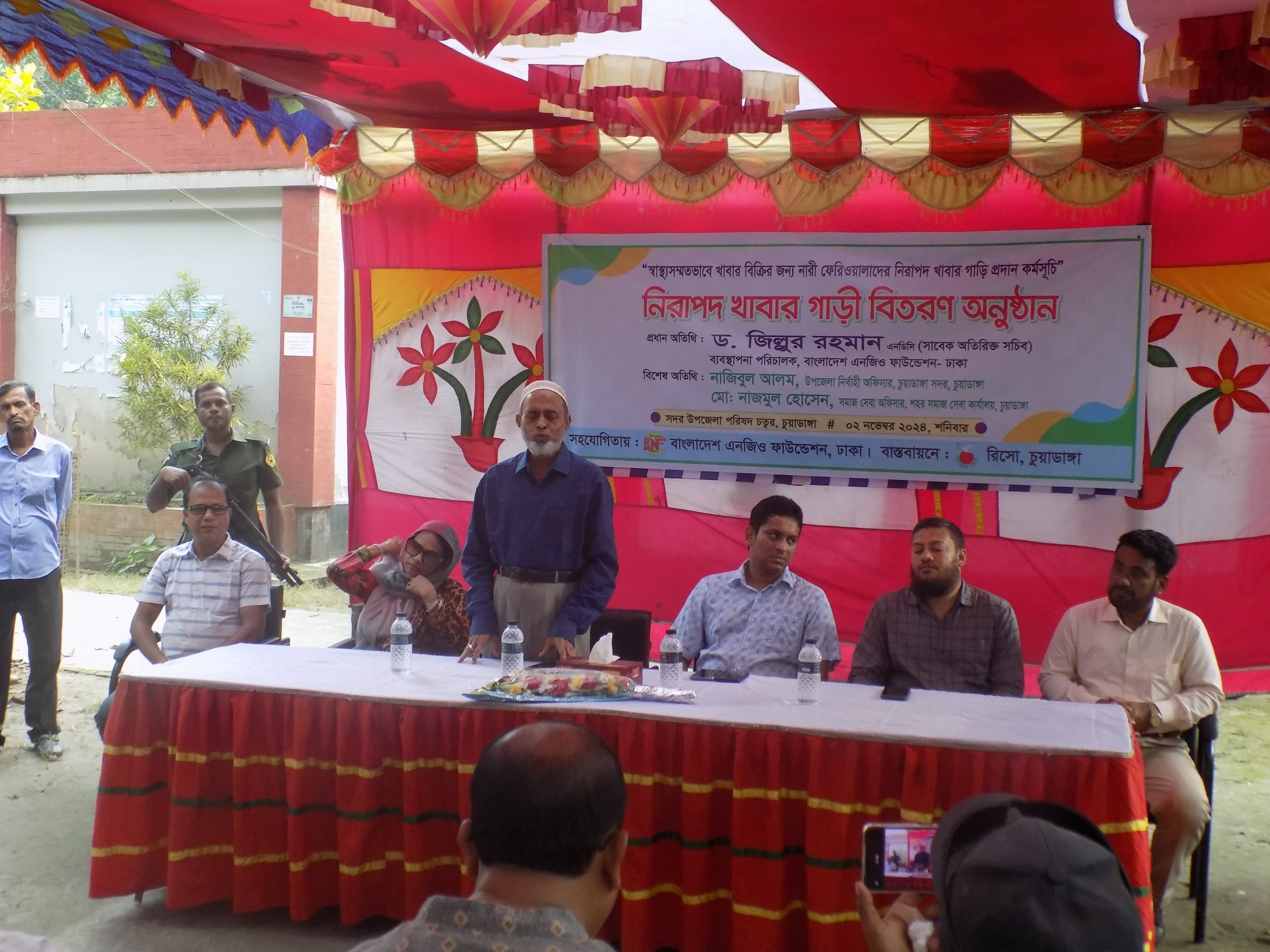 ও ফাউন্ডেশন দেশব্যাপী কাজ করছে। একদিন বিশে^র উন্নত দেশের কাতারে বাংলাদেশ চলে যাবে সেই প্রত্যাশা করছি। যাতে বাংলাদেশ মাথা উঁচু করে চলতে পারে। বাংলাদেশ এনজিও ফাউন্ডেশন রিলিফের কাজ করেনা। প্রায় বারো শো সহযোগি সংস্থার মাধ্যমে প্রান্তিক দরিদ্র মানুষকে স্বাবলম্বী করার কাজ করে। রিসো’র এই কাঁচ ঘেরা খাবার গাড়িগুলো অত্যন্ত সুন্দও হয়েছে, আশা করি যে ৮ জন এই গাড়ি পেলেন একদিকে যেমন তাদেও পরিবারের আর্থ-সামাজিক অবস্থার উন্নয়ন হবে, অপরদিকে তারা স্কুলের শিশুদের কাছে স্বাস্থ্য’সম্মতভাবে নিরাপদ খাবার বিক্রি করতে পারবেন।