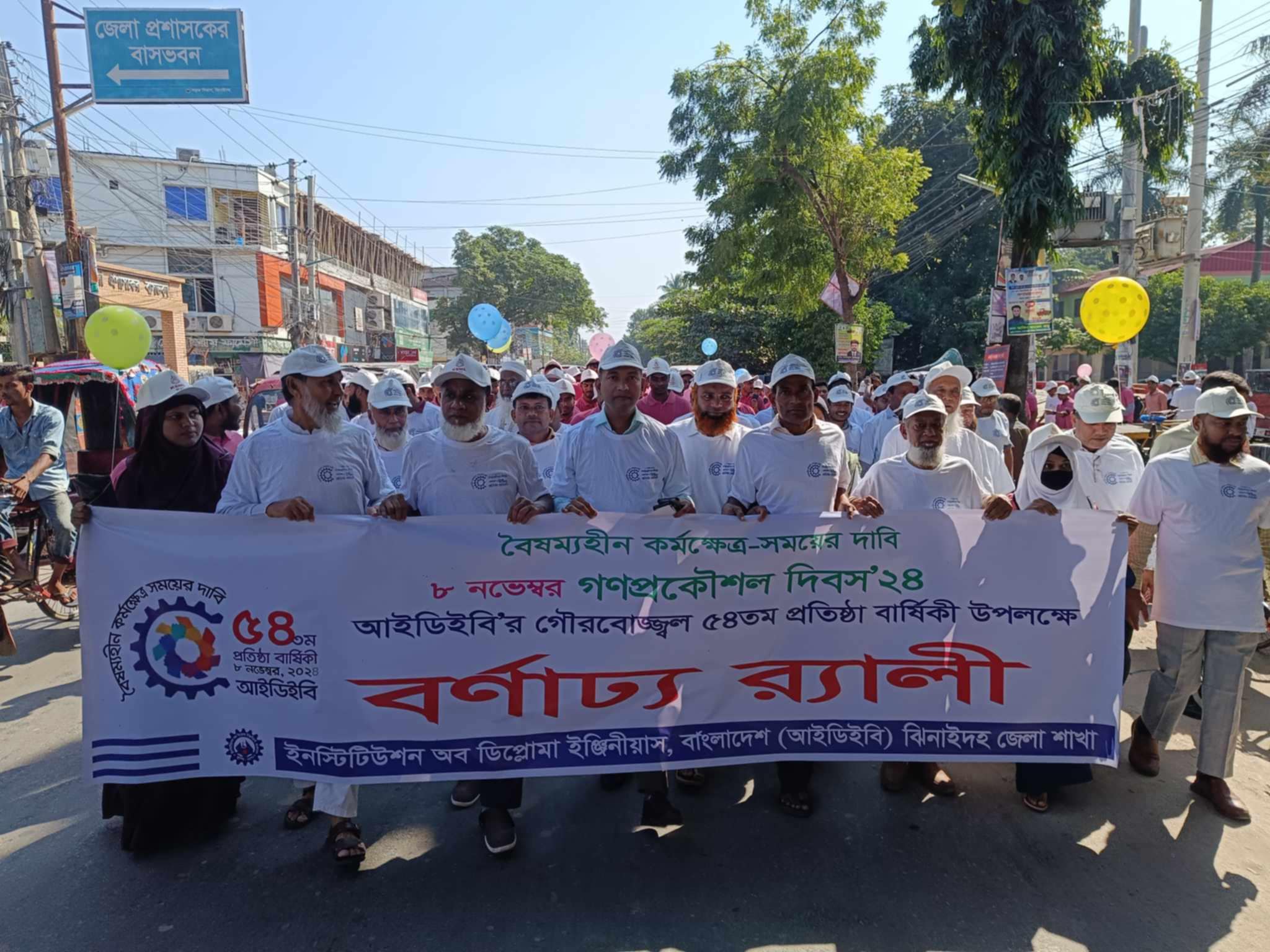 ঝিনাইদহ থেকে বিশেষ প্রতিনিধি মোঃ ফজলুল কবির গামা:: বৈষম্যহীন কর্মক্ষেত্র গড়ার প্রত্যয় নিয়ে রোববার সকালে ঝিনাইদহে ইন্সটিটিউট অব ডিপ্লোমা ইঞ্জিনিয়ার্সের (আইডিইবি) ৫৪ তম প্রতিষ্ঠাবার্ষিকী ও গণপ্রকৌশল দিবস পালিত হয়। এ উপলক্ষে রোববার সকালে ঝিনাইদহ পুরাতন ডিসি কোর্ট চত্বর থেকে বর্ণাঢ্য র্যালি বের হয়। র্যালিটি শহরের গুরুত্বপূর্ণ সড়ক প্রদক্ষিণ করে পুরাতন ডিসি কোর্ট চত্বরে এসে শেষ হয়। এসময় প্রধান অতিথি হিসেবে উপস্থিত ছিলেন, ঝিনাইদহের অতিরিক্ত জেলা প্রশাসক বকুল চন্দ্র কবিরাজ। বক্তব্য রাখেন, আইডিইবি ঝিনাইদহ জেলা সভাপতি ইয়াসিন আলী, সাধারণ সম্পাদক মুন্সি আবু সাইদ, কাউন্সিলর স্বপন কুমার বিশ্বাস, শরিফুল ইসলাম ও সাব্বির আহমেদ প্রমুখ। বক্তাগণ বলেন, কর্মক্ষেত্রে বৈষম্যহীনতা দূর করতে প্রকৌশলীদের এক হয়ে কাজ করতে হবে।