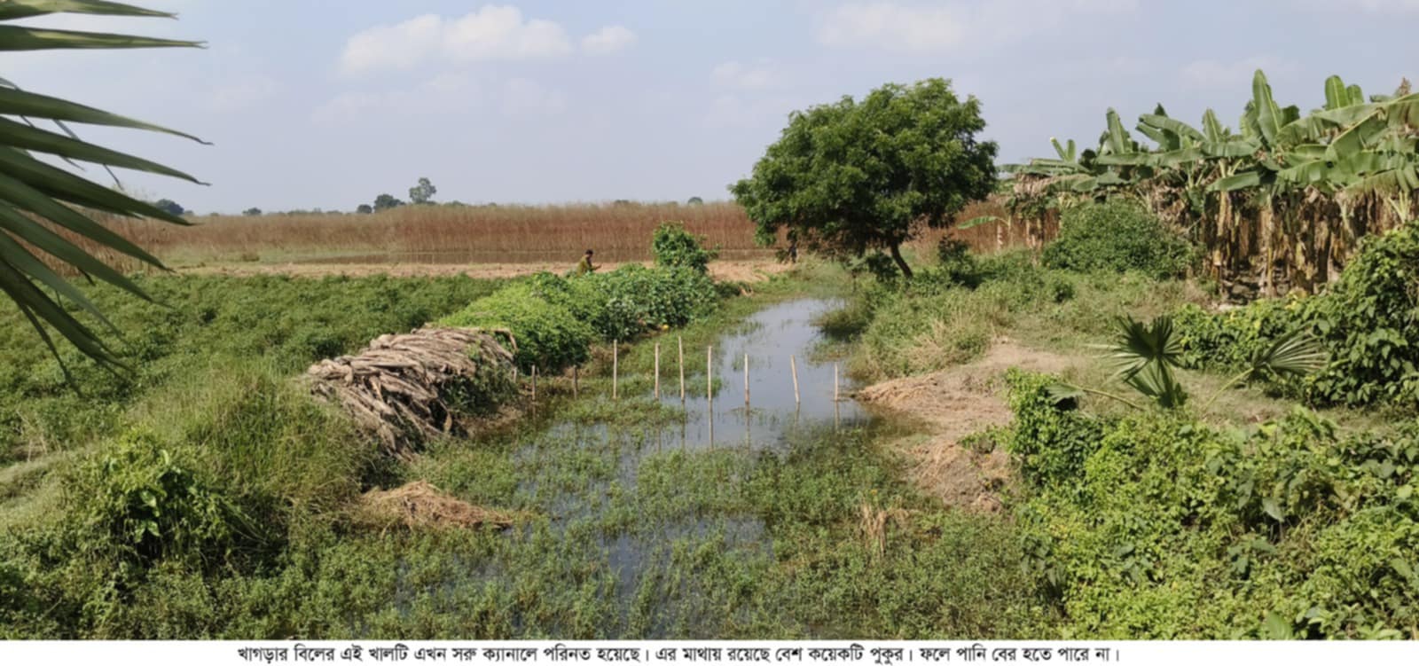 সরেজমিনে গিয়ে দেখা গেছে, গাংনীর নওপাড়া, সহোগলপুর, ধলা, গাড়াবাড়িয়া ও মেহেরপুর সদরের কলবাড়িয়া ও কালিগাংনীর বিশাল মাঠটি খাগড়ার বিল নামে পরিচিত। এ মাঠে রয়েছে প্রায় দুই হাজার হেক্টর জমি। একসময় এ বিলে শুধু আমন ধান হতো। জমি থাকলেও ফসল না হওয়ায় চাষিরা কোন আবাদই করতেন না। তৎকালীন সাবেক প্রেসিডেন্ট জিয়াউর রহমানের উদ্যোগে ওই বিলের পানি নিষ্কাশনের জন্য একটি খাল খনন কর্মসূচি হাতে নেন। খাল খননের পর থেকে মাঠের আর কোন ফসলহানী হতো না। খালটি খাগড়ার বিল থেকে নওপাড়া ভাটপাড়া হয়ে কাজলা নদির সাথে মিশেছে। খাল খননের পর ওই মাঠে দুটি কখনও কখনও তিনটি ফসল আবাদ হতো। তবে মাঠের ফসল ঘরে তুলতে বেশ বেগ পেতে হতো চাষিদের। স্থানীয়দের দাবীর প্রেক্ষিতে দীর্ঘদিন পর চেয়ারম্যান মিজানুর রহমান রানা মাটি দিয়ে রাস্তা তৈরী করেন। এতে কিছুটা দূর্ভোগ লাঘব হলেও বছর চারেক আগে ওই রাস্তাটি চলাচলের অযোগ্য হওয়ায় চাষিরা ফসল ঘরে তুলতে বেগ পান। এতে চাষিরা অনেক সময় ফসল ঘরে তুলতেও পারে না। গেল বছর দূভোগ লাঘবে স্থানীয়রা নিজ উদ্যোগে রাস্তাটিতে মাটি ভরাট করে। কিন্তু পুরোপুরি সংস্কার না করায় সেটিও কাজে আসছে না। মাঠেই ধান মাড়াই ও পাট পচিয়ে এবং আশ ছাড়িয়ে শুকিয়ে ঘরে তোলেন। এতে খরচ বেড়ে যায়। মাঠের মধ্যে আজো পাটের আঁশ ছাড়ানো ও পাটকাঠি দেখা গেছে। অনেক ফসল তলিয়ে আছে। যা চাষিরা আর ঘরে তুলতে পারবেন না। কুলবাড়িয়া গ্রামের চাষি নহরুল ইসলাম জানান, তার এই বিলের মাঠে ১০ বিঘা জমি রয়েছে। আগে বিলে জলাবদ্ধতা না থাকায় তিনটি ফসল ঘরে তুলতেন। এখন বিলের পানি বের হতে না পারায় মাত্র একটি ফসল হয়। বিলের পানি বের হবার খালের মুখে পুকুর খনন ও ভরাট করে চাষাবাদ করায় নওপাড়া হয়ে মাঠের পানি কাজলা নদীতে পড়তে পারে না। এতে জলাবদ্ধতা দেখা দেয়। তাছাড়া যে ফসল হয় তা ঘরে তোলার জন্য কোন রাস্তা নেই। একই কথা জানালেন সহগলপুরের চাষি হৃদয় ও কালিগাংনী গ্রামের চাষি মিরাজ। বেশ কয়েকজন চাষি জানান, মাঠের ফসলহানী ও ফসল কেটে ঘরে তোলার সমস্যার কারনে অনেকেই জমি চাষ করতে চান না। আবার ওই সব জমি কেউ লীজ বা বর্গা নেন না। যারা বর্গা নেন তাদেরও মোটা অংকের টাকা লোকসান গুনতে হয়। একসময় এ বৃহত মাঠটিতে ফসল উৎপাদন হতো। এখন এ মাঠটি চাষিদের দুঃখের কারন হয়ে দাড়িয়েছে। কাথুলী ইউপি চেয়ারম্যান মিজানুর রহমান রানা জানান, মাঠের ফসল ঘরে তোলার জন্য তিনি রাস্তাটি তৈরী করেছিলেন। পরবতীর্তে রাস্তাটি হেরিংবন্ড করার জন্য অর্থ বরাদ্দ পাওয়া যায়নি। চেষ্টা করা হচ্ছে। অর্থ পাওয়া গেলেই রাস্তাটি সংস্কার করা হবে। তাছাড়া মাঠের পানি বের করার যে খালটি রয়েছে সেটি পুনরুদ্ধার করে সংস্কার করারও পরিকল্পনা রয়েছে বলেও জানান এই জনপ্রতিনিধ
