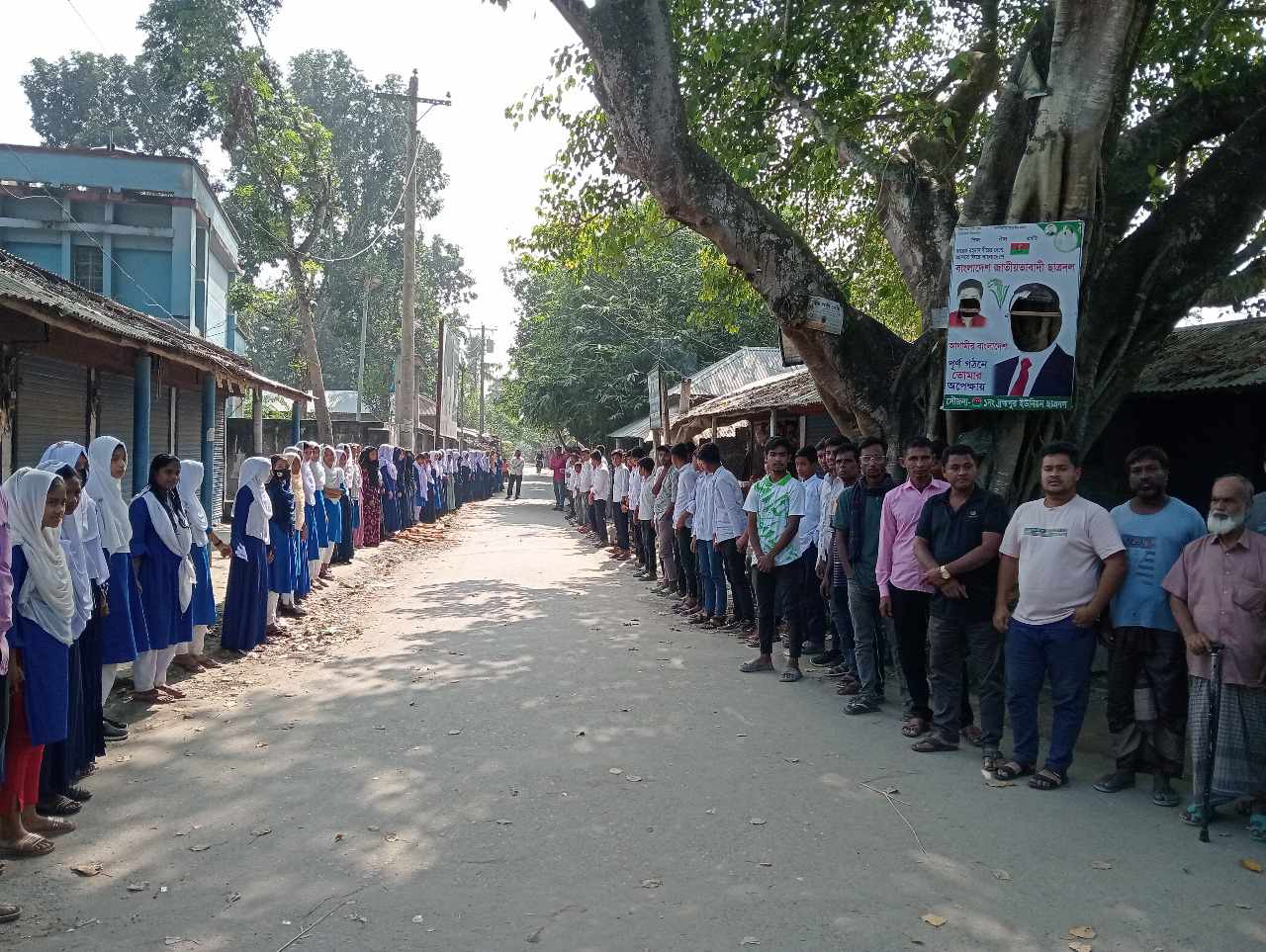 আল আমিন, নাটোর প্রতিনিধি :- নাটোরের নলডাঙ্গা উপজেলার ছাতারভাগ বাজার এলাকায় বিএনপির ভারপ্রাপ্ত চেয়ারম্যান তারেক রহমান ও কেন্দ্রীয় বিএনপির নির্বাহী সদস্য ও সাবেক উপমন্ত্রী এম রুহুল কুদ্দুস তালুকদার দুলুর ছবি সম্বলিত ফেস্টুন কেটে ফেলার প্রতিবাদে মানববন্ধন অনুষ্ঠিত হয়েছে। বিএনপি নেতার ফেস্টুন কেটে ফেলার ঘটনায় আজ রবিবার দুপুর ১২টার দিকে ছাতারভাগ বাজারে মানববন্ধনে অংশ নেন ছাতারভাগ স্কুল এন্ড কলেজের শিক্ষার্থী ও এলাকাবাসী। ঘন্টাব্যাপী মানবন্ধনে বক্তব্য রাখেন, উপজেলা যুবদলের যুগ্ম আহ্বায়ক খোরশেদ আলম, যুবদলের নেতা রাকিব হোসেন, ছাত্রদল নেতা জিয়াদ আলী, মুনছুর রহমান প্রমুখ। এসময় বক্তারা বলেন, বিএনপির ভারপ্রাপ্ত চেয়ারম্যান তারেক রহমান ও কেন্দ্রীয় বিএনপির নির্বাহী সদস্য ও সাবেক উপমন্ত্রী এম রুহুল কুদ্দুস তালুকদার দুলুর জনপ্রিয়তা কে ভয় পেয়ে ও আগামীতে ব্রহ্মপুর ইউনিয়ন বিএনপির বিশাল জনসভাকে বানচাল করতে ফ্যাসিস্ট আওয়ামীলীগের সন্ত্রাসীরা বিভিন্নভাবে যড়যন্ত্রে লিপ্ত হচ্ছে। জাতীয় নেতাদের ফেস্টুন থেকে ছবি কেটে ফেলা এ গুলো আওয়ামী ফ্যাসিস্ট সন্ত্রাসীদের কাজ বলে অভিযোগ করেন। তাদের বিরুদ্ধে আইনের মাধ্যমে উপযুক্ত শাস্তির দাবী জানান। জানা যায়, কিছুদিন আগে উপজেলার ছাতারভাগ বাজারের মোড়ে একটি বট গাছে ব্রহ্মপুর ইউনিয়ন ছাত্রদলের সৌজন্যে বিএনপির ভারপ্রাপ্ত চেয়ারম্যান তারেক রহমান ও কেন্দ্রীয় বিএনপি নেতা ও সাবেক উপমন্ত্রী এম রুহুল কুদ্দুস তালুকদার দুলুর ছবি সম্বলিত ফেস্টুন টাঙ্গানো হয়। শনিবার রাতের কোন এক সময় ফেস্টুনটি কেটে ফেলে দুর্বৃত্তরা। রবিবার সকালে বিষয়টি সকলের নজরে পড়ে। পরে দুপুরে এই ঘটনার প্রতিবাদ জানিয়ে মানববন্ধন করে স্থানীয়রা। তবে এ রিপোর্ট লেখা পর্যন্ত এ ঘটনায় থানায় কোন অভিযোগ দায়ের করা হয়নি।