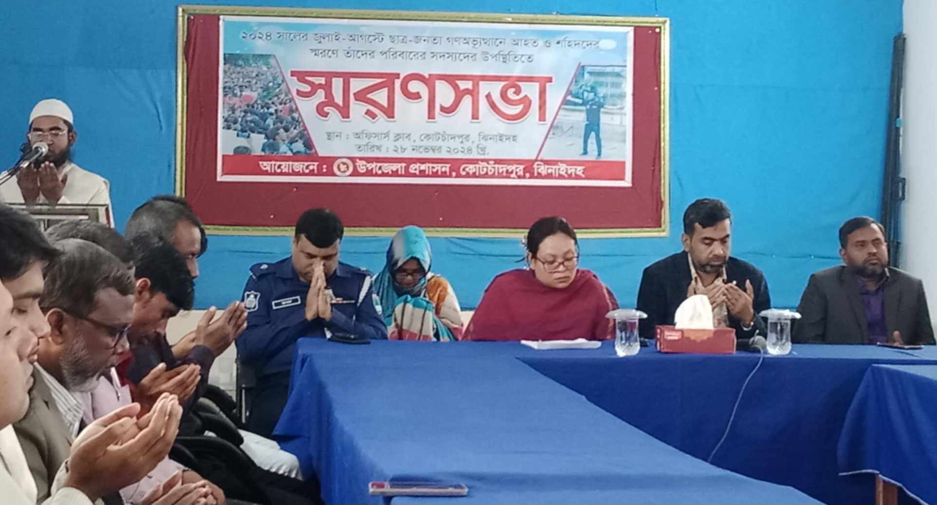 রোকনুজ্জামান কোটচাঁদপুরঃ ঝিনাইদহের কোটচাঁদপুর ২০২৪ সালের জুলাই- আগস্টে ছাত্র- জনতার গণঅভ্যুত্থানে আহত ও শহীদদের স্মরণে তাদের পরিবারের সদস্যদের উপস্হিতিতে স্মরণসভা অনুষ্ঠিত হয়েছে । বৃহস্পতিবার সকালে কোটচাঁদপুর অফিসার্স ক্লাবে এই সভা অনুষ্ঠিত হয়। অনুষ্ঠানে উপজেলা নির্বাহী কর্মকর্তা উছেন মের সভাপতিত্বে বিশেষ অতিথি হিসেবে উপস্থিত ছিলেন, কোটচাঁদপুর উপজেলা স্বাস্থ্য পরিবার ও পরিকল্পনা কর্মকর্তা আমানউল্লাহ,কোটচাঁদপুর মডেল থানার ওসি (তদন্ত) স্বপন কুমার, প্রাণী সম্পদ কর্মকর্তা জিল্লুর রহমান,প্রকল্প বাস্তবায়ন কর্মকর্তা জহুরুল ইসলাম,পল্লীসঞ্জয় কর্মকর্তা শাইলা শারমিন,উপজেলা মাধ্যমিক শিক্ষা অফিসার অশোক সরকার, মহিলা বিষয়ক কর্মকর্তা শিলা বেগম,প্রাথমিক শিক্ষক কর্মকর্তা সাখি সালমা, একাডেমিক সুপারভাইজার ফারুক হোসেন, কোটচাঁদপুর পাইলট মাধ্যমিক বিদ্যালয়ের প্রধান শিক্ষক মফিজুর রহমান, বালিকা বিদ্যালয়ের প্রধান শিক্ষক ইছাহক আলী। এছাড়াও বক্তব্য রাখেন ঝিনেদাহ বৈষম্য বিরোধী ছাত্র আন্দোলন আহ্বায়ক কমিটির সংগঠক হৃদয় আহসান,সাইফুল ইসলাম শিলু,তুহিন রহমান। তত্ব কর্মকর্তা তানিয়া সুলতানার সঞ্চালনায় বৈষম্য বিরোধী ছাত্র আন্দোলনের যুগ্ম সদস্য সচিব আল শাহরিয়ার অভিক,ফায়েজ আহম্মেদ, দেলোয়ার হোসেন দিলু, মোহাম্মদ আবীর হোসেন,আল মাসুদ প্রত্যয়, হাবিবুর রহমান বিভিন্ন দায়িত্বশিলরা উপস্থিত ছিলেন।