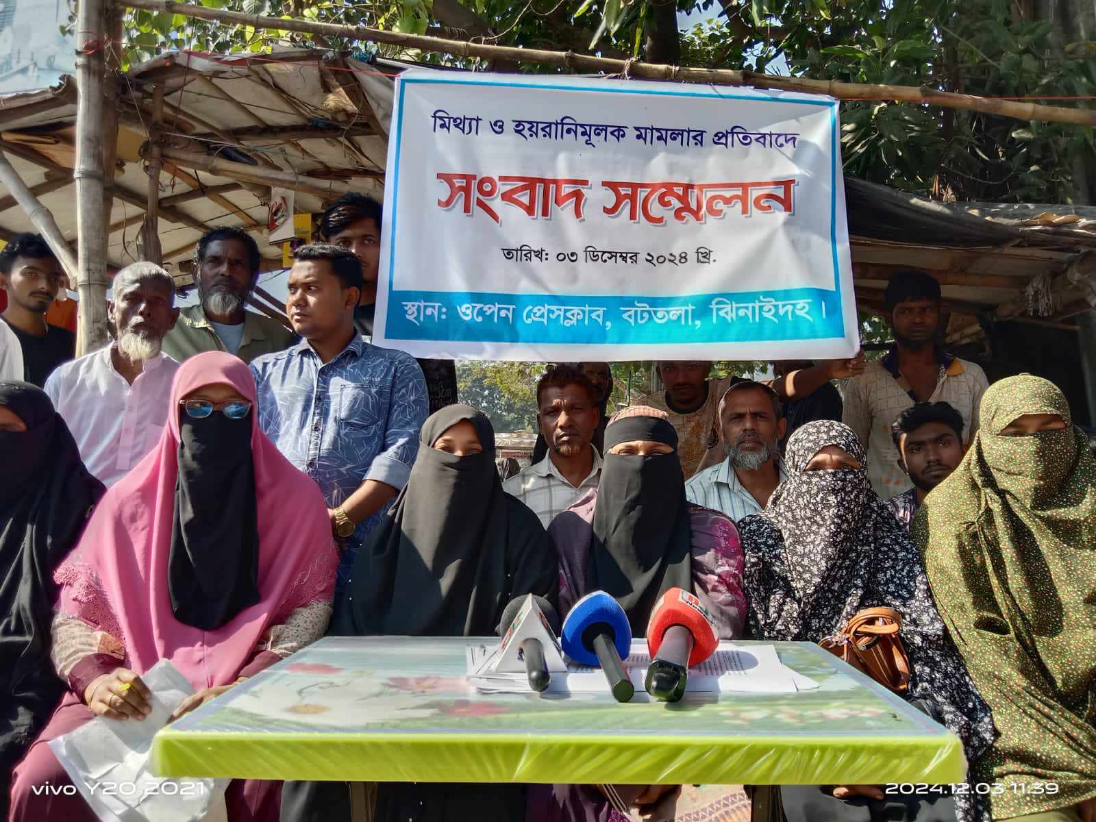 বিশেষ প্রতিনিধি – ফজলুল কবির গামা, ঝিনাইদহে হয়রানি মুলক মামলার প্রতিবাদে সংবাদ সম্মেলন করা হয়েছে। মঙ্গলবার দুপুর ১২টার দিকে ওপেন প্রেসক্লাবে এ সংবাদ সম্মেলন করেন ভুক্তভোগী ও এলাকাবাসী। এসময় লিখিত বক্তব্য পাঠ করেন আসামী আব্দুল্লাহ মা রীনা খাতুন। উপস্থিত ছিলেন হৃদয় আলী,সুমন শেখ, হাফিজুর রহমান,রাব্বি হোসেন,আবিদ হোসেন,সাগর মিয়া,মুঞ্জু খাতুন,শান্তা খাতুন,পান্না বেগম,জেসমিন আক্তার,সোহান বিশ্বাস,আকাশ মিয়া,ছুটু আলী,আশা বিশ্বাস,মোহাম্মদ আলী ও দেলোয়ার হোসেনসহ অনেকে। লিখিত বক্তব্যে উল্লেখ করেন, গত ১ নভেম্বর সদর উপজেলার মহিষাকুন্ডু এলাকায় ব্যাডমিন্টন খেলাকে কেন্দ্র করে প্রতিবেশী মমতাজ বেগমের ছেলে আলিফের সাথে তরিকুল ইসলামের ছেলে নিশানের কথা কাটাকাটি হয়। পরে বিষয়টি সামাজিক ও প্রশাসনিক ভাবে সমাধান করা হয়। এর একমাস পরে মমতাজ বেগম বাদি হয়ে তারিকুল ইসলামের ছেলে মেঃ. আব্দুল্লাহ ও মোঃ নিশানের বিরুদ্ধে আদালতে একটি ধর্ষণ মামলা দায়ের করে । এঘটনায় পুলিশ তাদেরকে গ্রেপ্তার করে। তারা আরো বলেন, মমতাজ বেগম গত কয়েক বছর ধরে এলাকার বিভিন্ন মানুষের বিরুদ্ধে মিথ্যা মামলা করে হয়রানী করে আসছে। তাই বিষয়টি তদন্ত করে নিরাপরাধ ব্যক্তিদের মুক্তির দাবি জানানো হয়। এ সংবাদ সম্মেলনে মহিষাকুন্ডু এলাকার দেড় শতাধিক নারী-পুরুষ অংশ নেন।