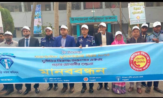 মাহমুদ হাসান রনি,চুয়াডাঙ্গা প্রতিনিধিঃ দামুড়হুদায় আন্তজার্তিক দুর্নীতি বিরোধী দিবস উপলক্ষে মানববন্ধন ও আলোচনা সভা অনুষ্ঠিত হয়েছে।