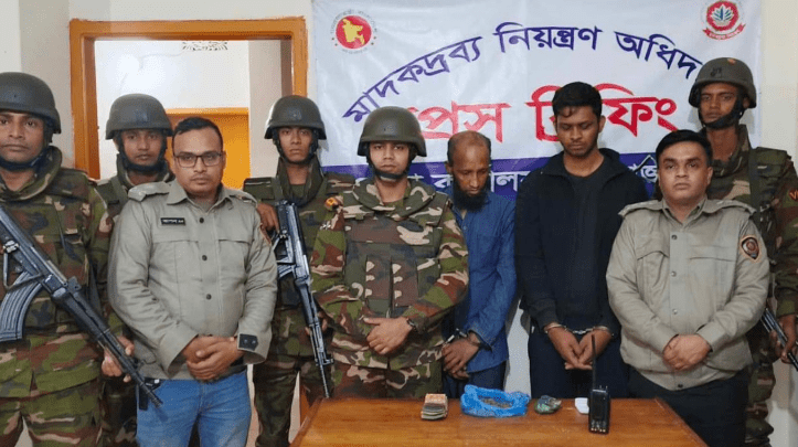 জেলা মাদকদ্রব্য নিয়ন্ত্রণ কার্যালয়ের সহকারী পরিচালক মো. বাবুল সরকার বলেন, গোপন সংবাদের ভিত্তিতে শহরের মধ্যরাস্তা এলাকায় সেনাবাহিনী, মাদকদ্রব্য নিয়ন্ত্রণ অধিদপ্তর ও পুলিশের যৌথ অভিযানে ওই দুই মাদক কারবারিকে ইয়ারা ও গাঁজাসহ গ্রেপ্তার করা হয়। এসময় তাদের কাছ থেকে ১০ পিস ইয়াবা ১০০ গ্রাম গাঁজা ও নগদ ৫৫ হাজার ৫০ টাকা উদ্ধার করা হয়। প্রাথমিক জিজ্ঞাসাবাদে জানা গেছে তারা দীর্ঘ দিন ধরে এলাকায় মাদক ব্যবসা চালিয়ে আসছিল।