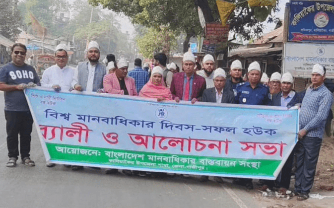 স্টাফ রিপোর্টার, গাজীপুর :: গাজীপুরের কালিয়াকৈরে ৪৭তম বিশ্ব মানবাধিকার দিবস উপলক্ষে র্যালি ও আলোচনা সভা অনুষ্ঠিত হয়েছে। আজ মঙ্গলবার সকালে উপজেলার লতিফপুর সংস্থার নিজস্ব কার্য়্যালয়ে এই সভা অনুষ্ঠিত হয়। আলোচনা সভায় সভাপতিত্ব করেন বিশ্ব মানবাধিকার সংস্থার সভাপতি শাজাহান মিয়া,অনুষ্ঠান সঞ্চালনা করেন সাধারণ সম্পাদক ইমরান হোসেন হান্নান।