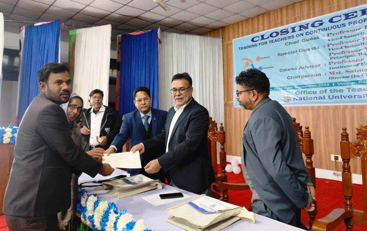 অনুষ্ঠান শেষে জাতীয় বিশ্ববিদ্যালয়ের উপাচার্য প্রশিক্ষণপ্রাপ্ত শিক্ষকদের হাতে প্রশিক্ষণ কোর্সের সার্টিফিকেট তুলে দেন।