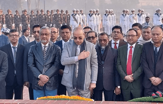 রাষ্ট্রপতি ও প্রধান উপদেষ্টার পর প্রধান বিচারপতি ও সুপ্রিম কোর্টের উভয় বিভাগের বিচারপতিগণ একযোগে স্মৃতিসৌধে পুষ্পার্ঘ্য অর্পণ করেন।