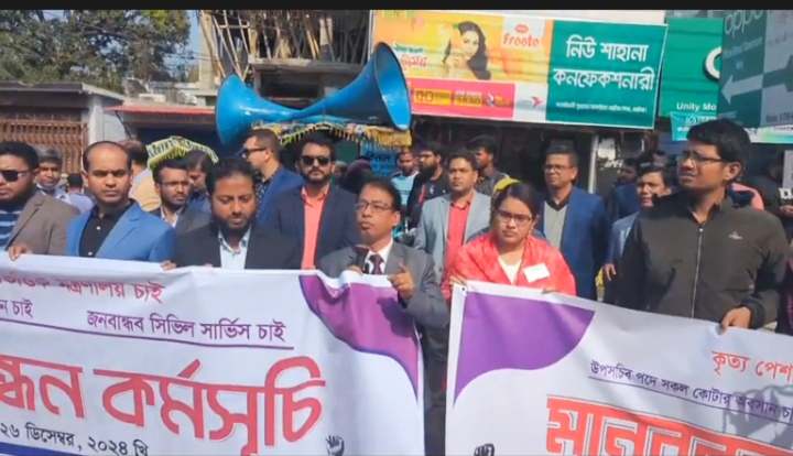 আল আমিন, নাটোর প্রতিনিধি :- বাংলাদেশ সিভিল সার্ভিসের ২৫ টি ক্যাডারের (বিসিএস প্রশাসন ক্যাডার বাদে) সমন্বয়ে গঠিত আন্তঃক্যাডার বৈষম্য নিরসনের দাবিতে মানববন্ধন অনুষ্ঠিত হয়েছে। আজ বৃহস্পতিবার বেলা ১১ টার দিকে কেন্দ্রিয় কর্মসূচীর অংশ হিসেবে আন্তঃক্যাডার বৈষম্য নিরসন পরিষদ নাটোর এর উদ্যোগে নাটোর প্রেস ক্লাবের সামনে এই মানববন্ধন কর্মসূচী পালন করছেন তারা। মানববন্ধনে বক্তারা বলেন, জুলাই-আগষ্ট বিপ্লব পরবর্তী একটি জনকল্যানমূলক রাষ্ট্র বির্নিমানের জন্য জনবান্ধব প্রশাসন ব্যবস্থা প্রয়োজন। তাই জনপ্রশাসন সংস্কার কমিশনের কাছে ছাত্র-জনতাসহ বিসিএস শিক্ষা ও স্বাস্থ্য ক্যাডার বিলুপ্তির সংক্রান্ত সুপারিশ প্রত্যাহার করা, উপসচিব পদে সকল কোটার অবসান ঘটিয়ে সকল ক্যাডারের সমন্বয়ে উন্মুক্ত পরীক্ষার মাধ্যমে উক্ত পদে নিয়োগ দান করা,সকল ক্যাডারের মধ্যে সমতা বিধান করার দাবি জানান। বক্তরা আরো বলেন,আমরা আশা করি জনপ্রশাসন সংস্কার কমিশন অতি দ্রুত আমাদের দাবি মেনে নিয়ে একটি জনকল্যাণমূলক জনপ্রশাসন পুনঃর্গঠন করবেন। অন্যথায় আন্তঃক্যাডার বৈষম্য নিরসন পরিষদ পরবর্তীতে কঠোর কর্মসূচী গ্রহন করবে। মানববন্ধনে বক্তব্য রাখেন, নাটোর নবাব সিরাজ উদ দৌলা সরকারি কলেজের সহযোগী অধ্যাপক ড. মোঃ আসাদুল ইসলাম, উপজেলা প্রাণিসম্পদ কর্মকর্তা ডাঃ মোঃ মোস্তফা জামান, কৃষি সম্প্রসারণ অধিদপ্তরের অতিরিক্ত উপপরিচালক কল্যাণ প্রসাদ, নাটোর আধুনিক সদর হাসপাতালের কনসালটেন্ট (মেডিসিন) ডা. এ এইচ এম আনিসুজ্জামান পিয়াস প্রমুখ।